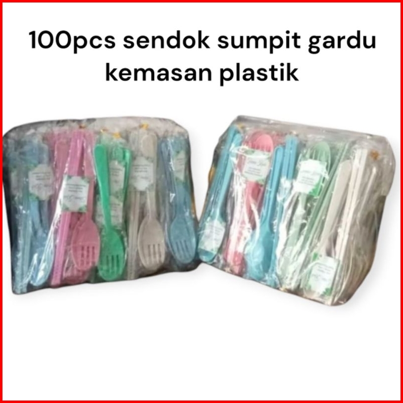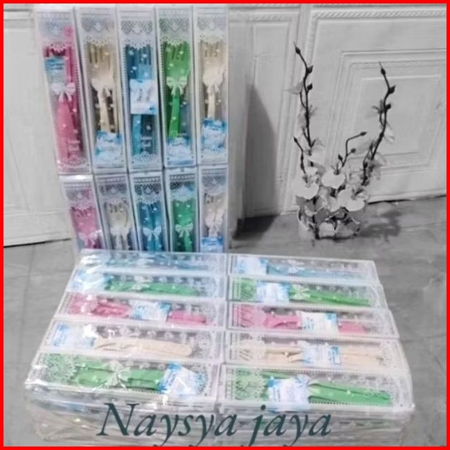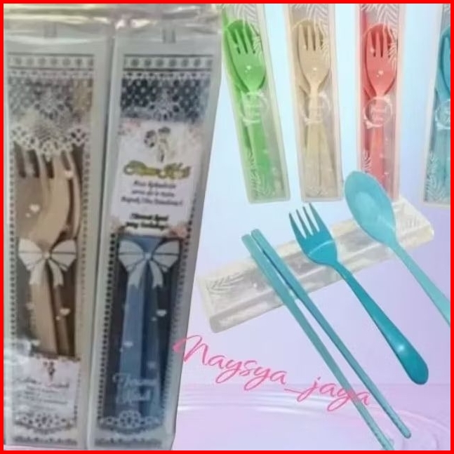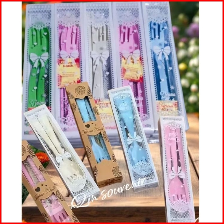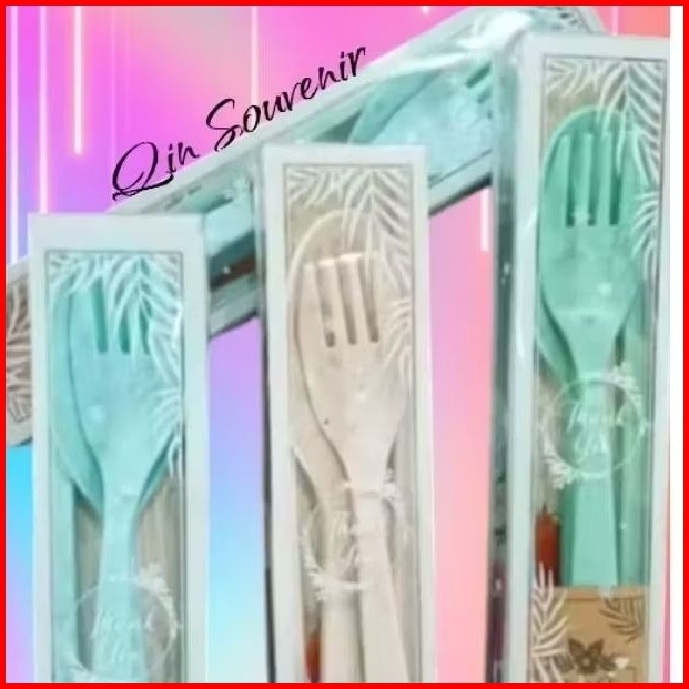 100pcs Set Sendok Sumpit Garfu Kemasan Mika Souvenir Hadia Pernikahan Free Ucapan Terimakasih