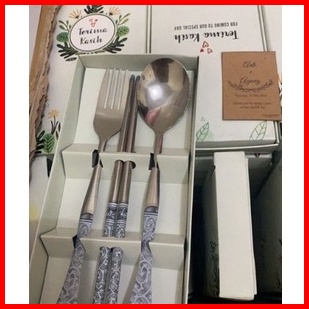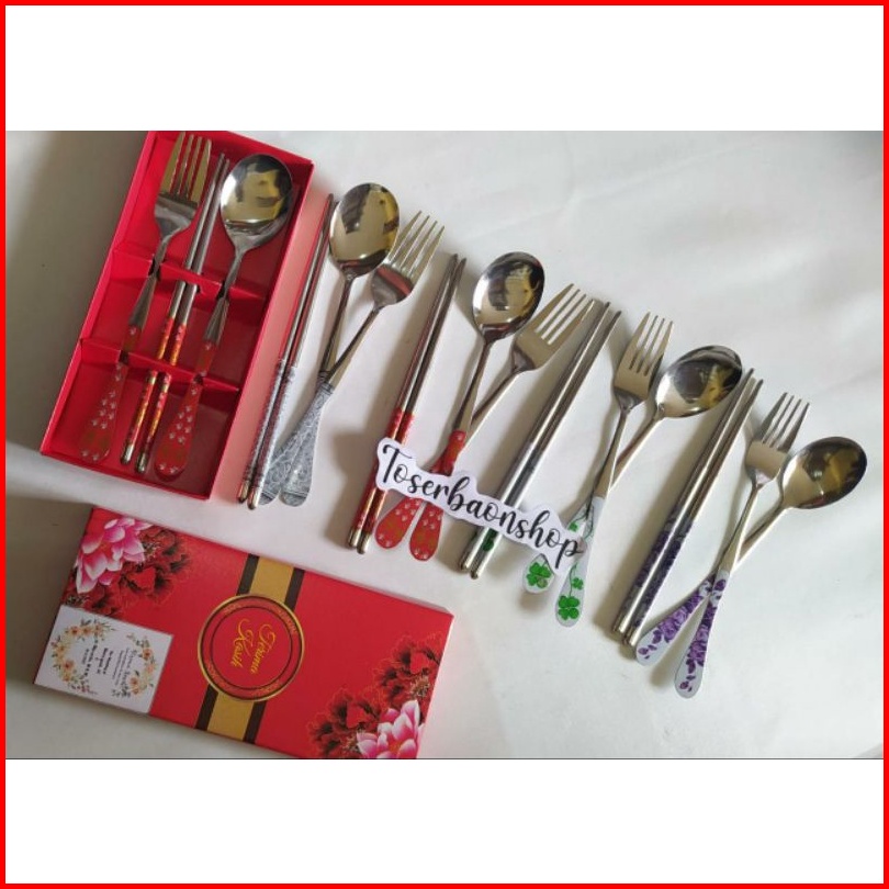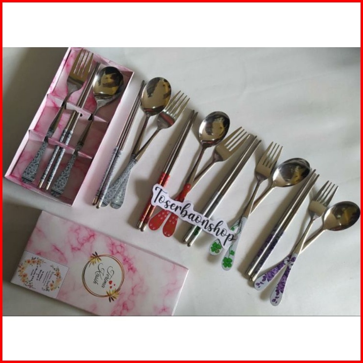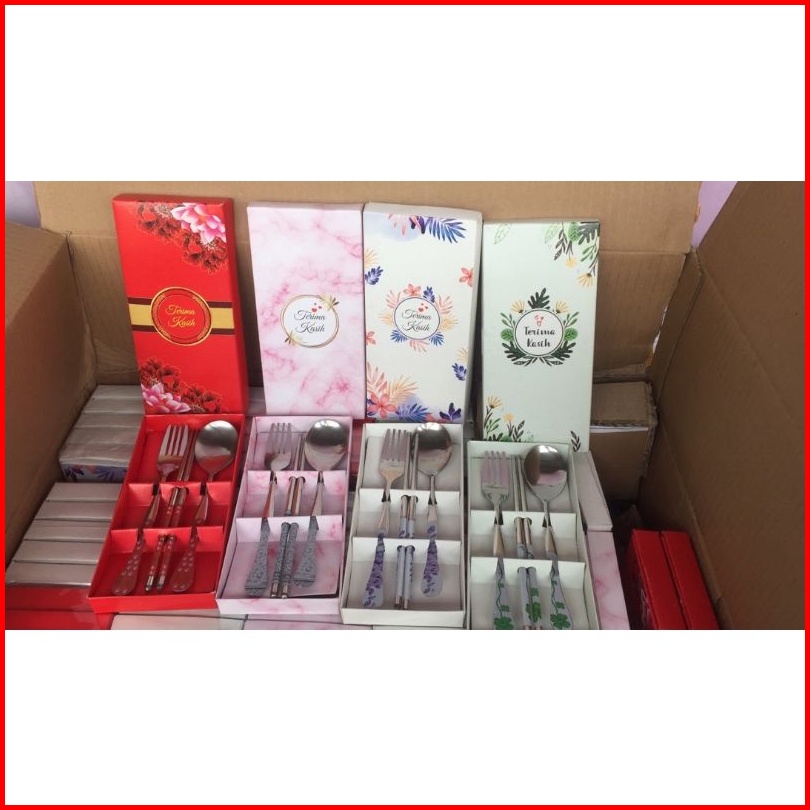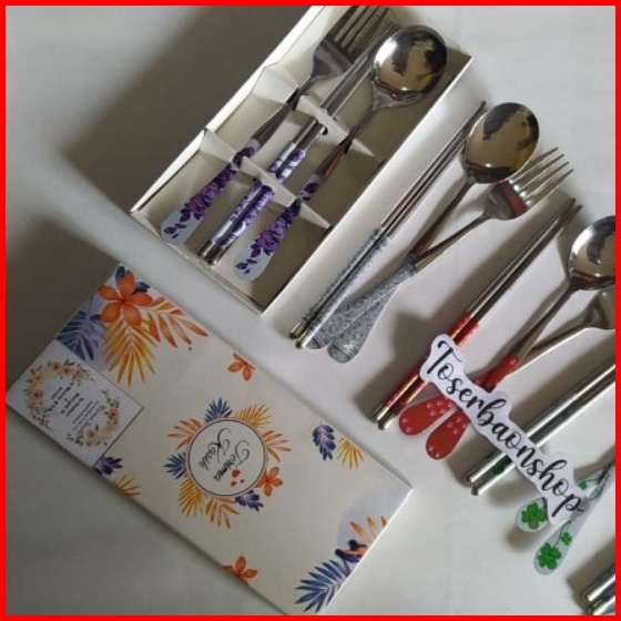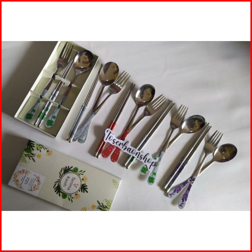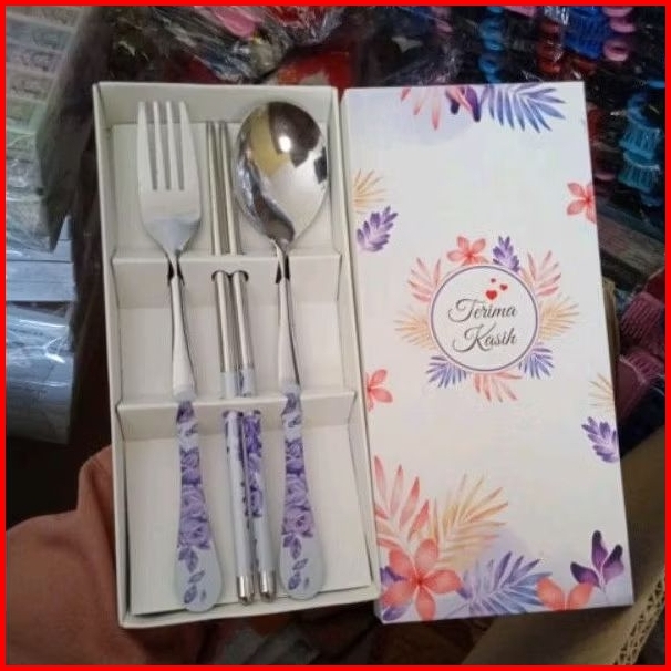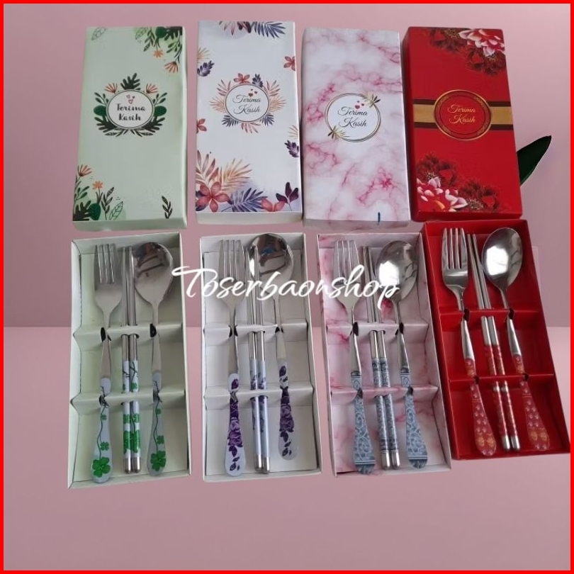 50 Set Souvenir Sendok Garpu Sumpit Gagang Motif Bunga Sakura Sovenir Pernikahan