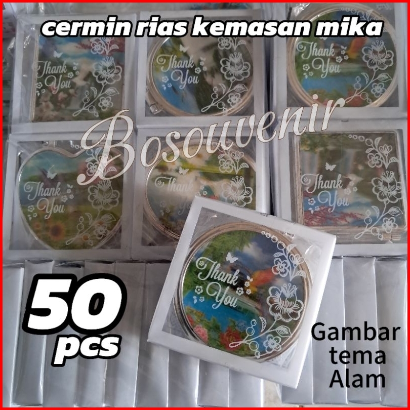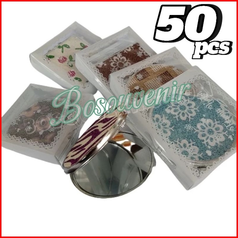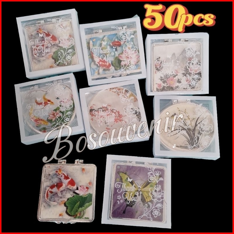 Isi 50 Souvenir Cermin Kaca Make Up Lipat Kemas Mika Souvenir Pernikahan