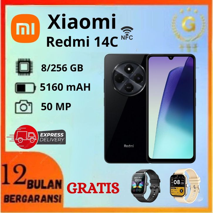 HP XIAOMI REDMI 14C RAM 8/256GB 5G NFC Bonus SmartWatch! Fast Charging 33 W Fullset NEW Garansi 1 TAHUN