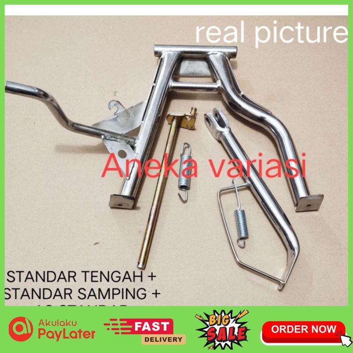 Paket Standar Tengah + Standar Samping + As Standar Tengah Ring 17 Honda Beat- Vario 110 Lama Karbu- Scoopy Full Chrome