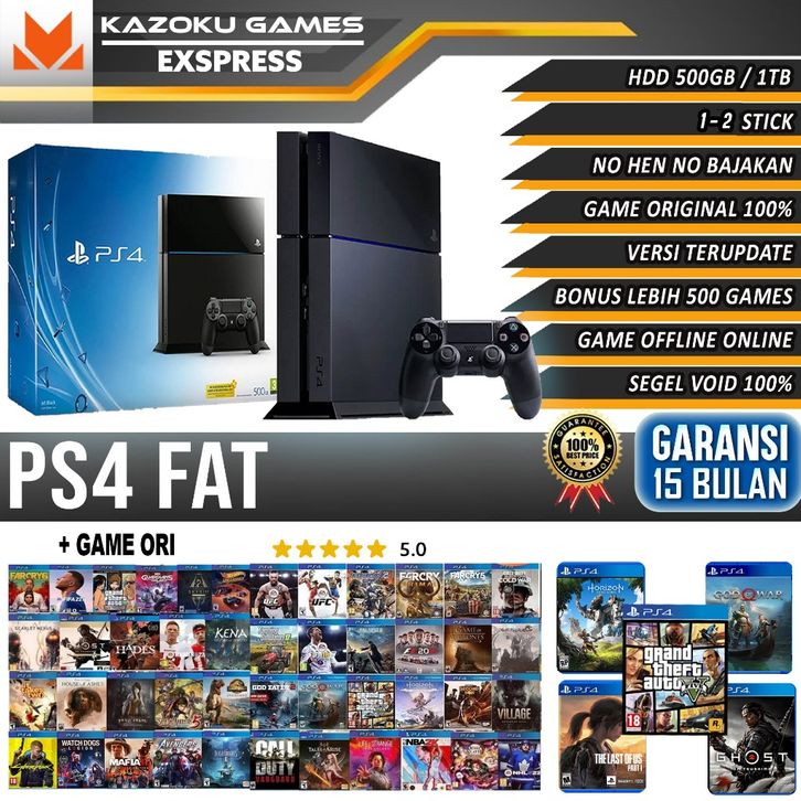 GERATIS ONGKIR✔️ TANPA DP✔️PS4 PRO/SLIM/FAT 500GB 1TB FULL GAME ONLINE GARANSI 15 BULAN - GAMES PERMANENT, FAT 1