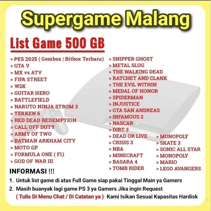 GERATIS ONGKIR✔️ TANPA DP✔️PS3 Super Slim CFW PS 3 Game Gaming Games Gamez