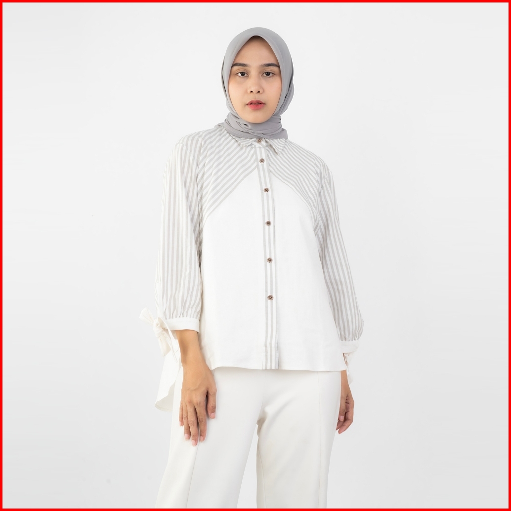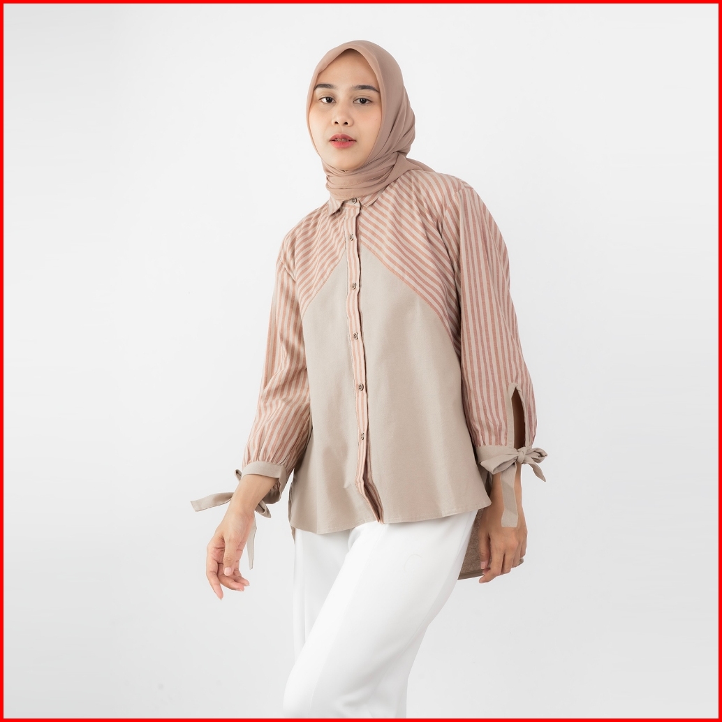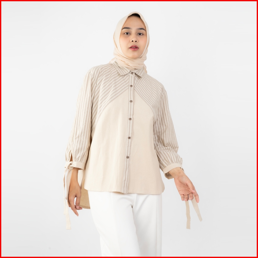 Haymeeidn - Nami Striped Combination Shirt Kemeja Salur Kombinasi Bahan Linen