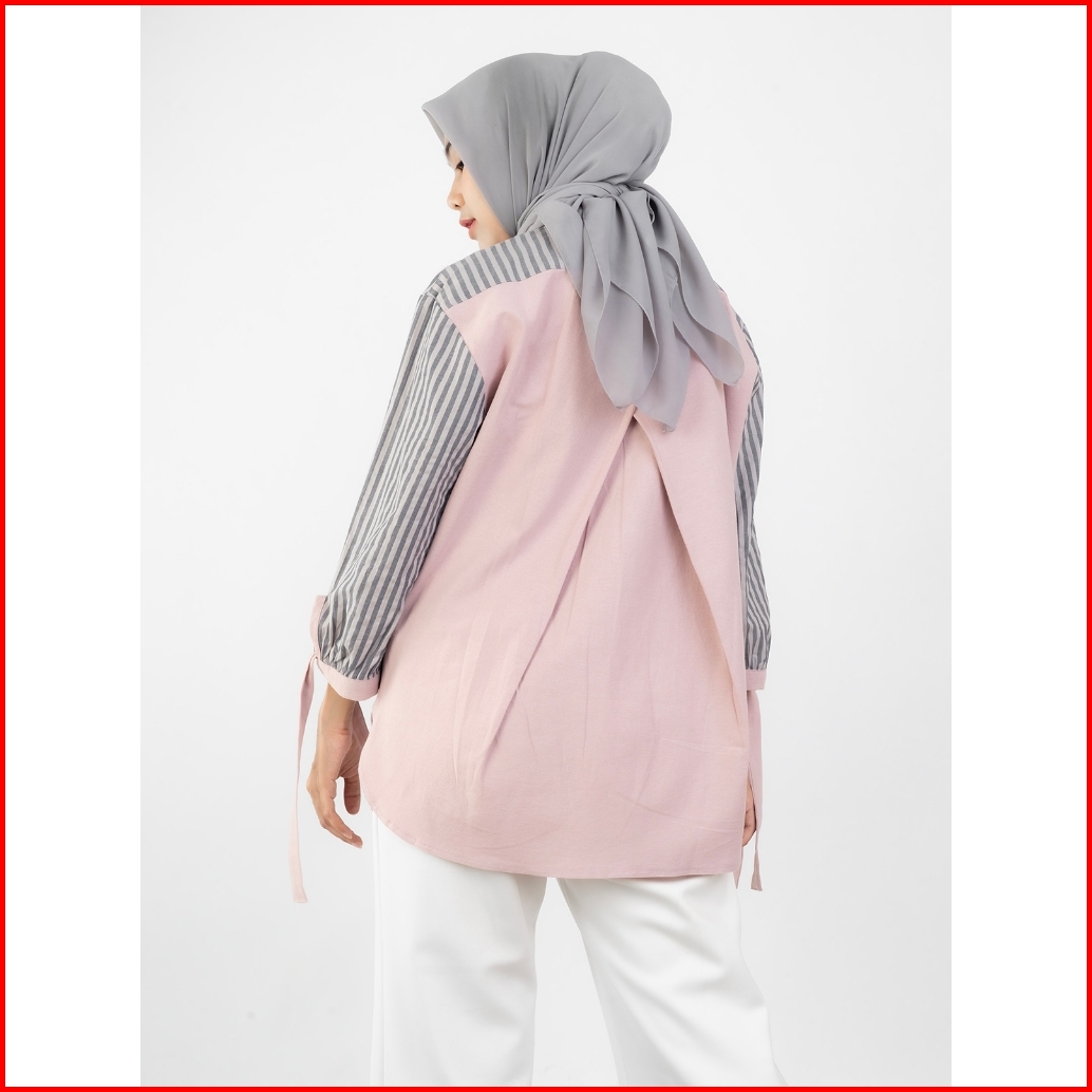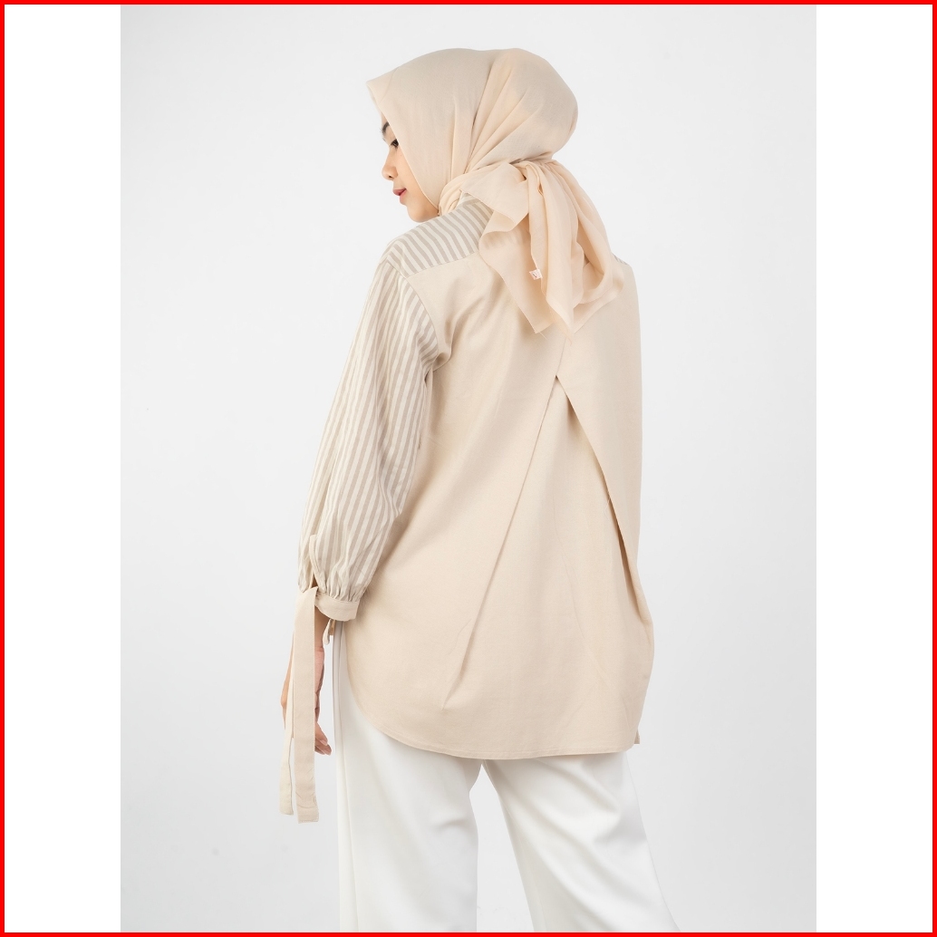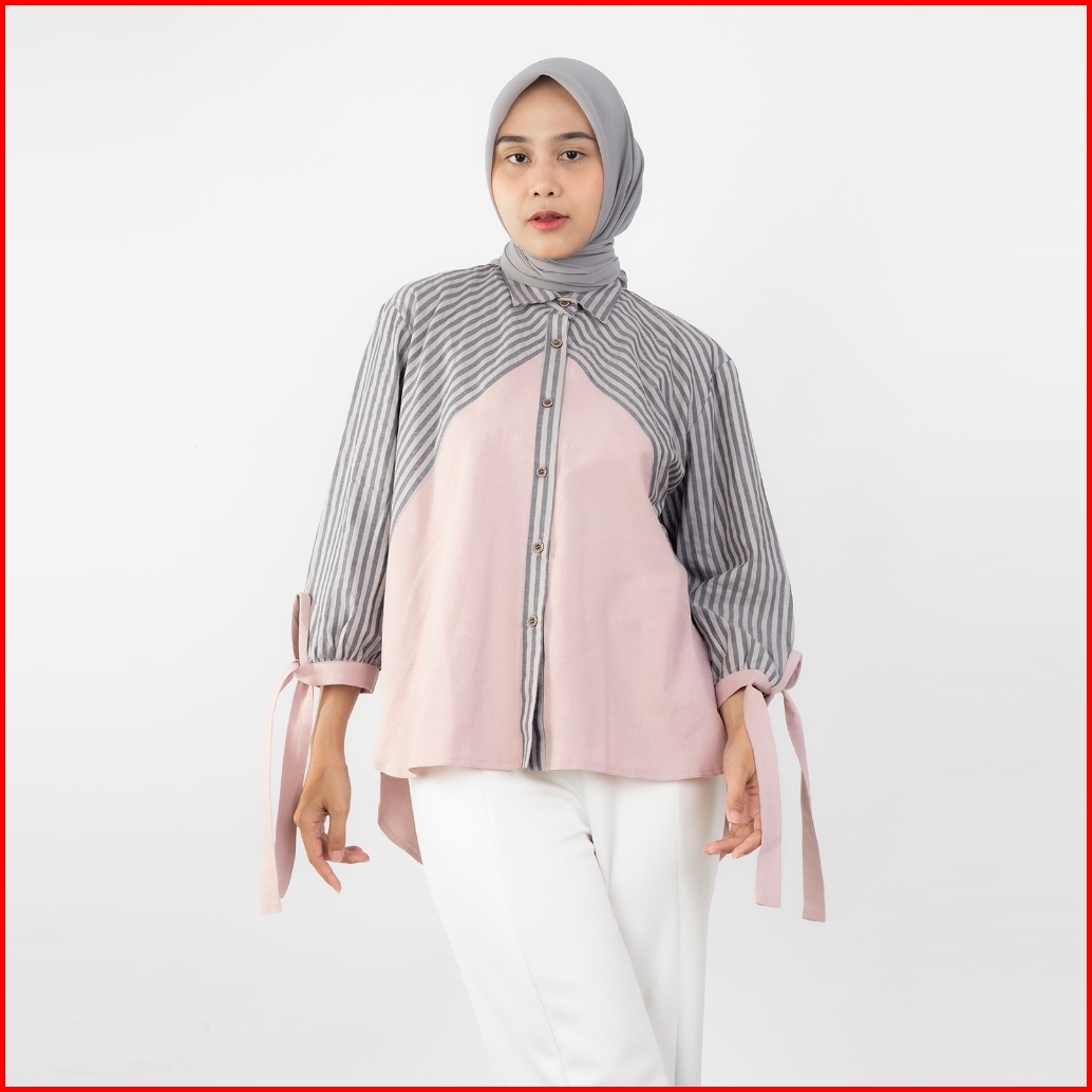 Haymeeidn - Nami Striped Combination Shirt Kemeja Salur Kombinasi Bahan Linen