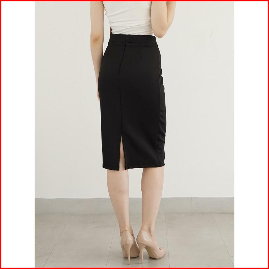 Haymeeidn - Rok Span Basic Midi Skrit Bawahan Wanita Rok Kantor 7 8 Scuba Nikola