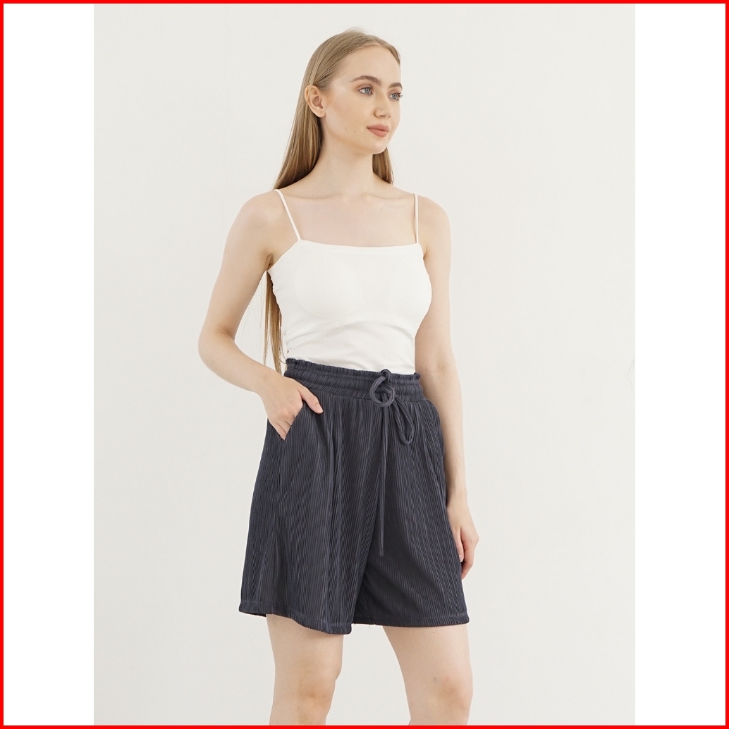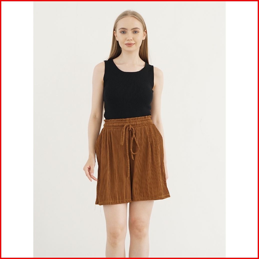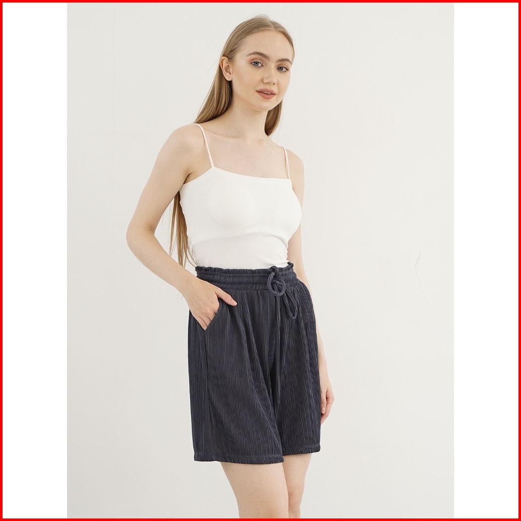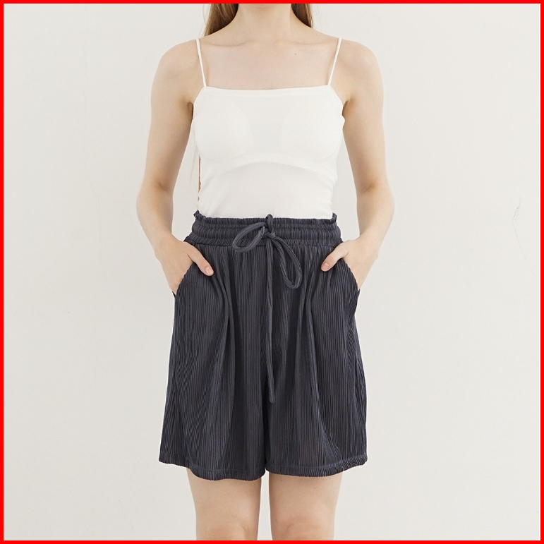 Haymeeidn - Pleats Relax Pants Celana Pendek Wanita Short Pants Celana Pendek Bahan Helio