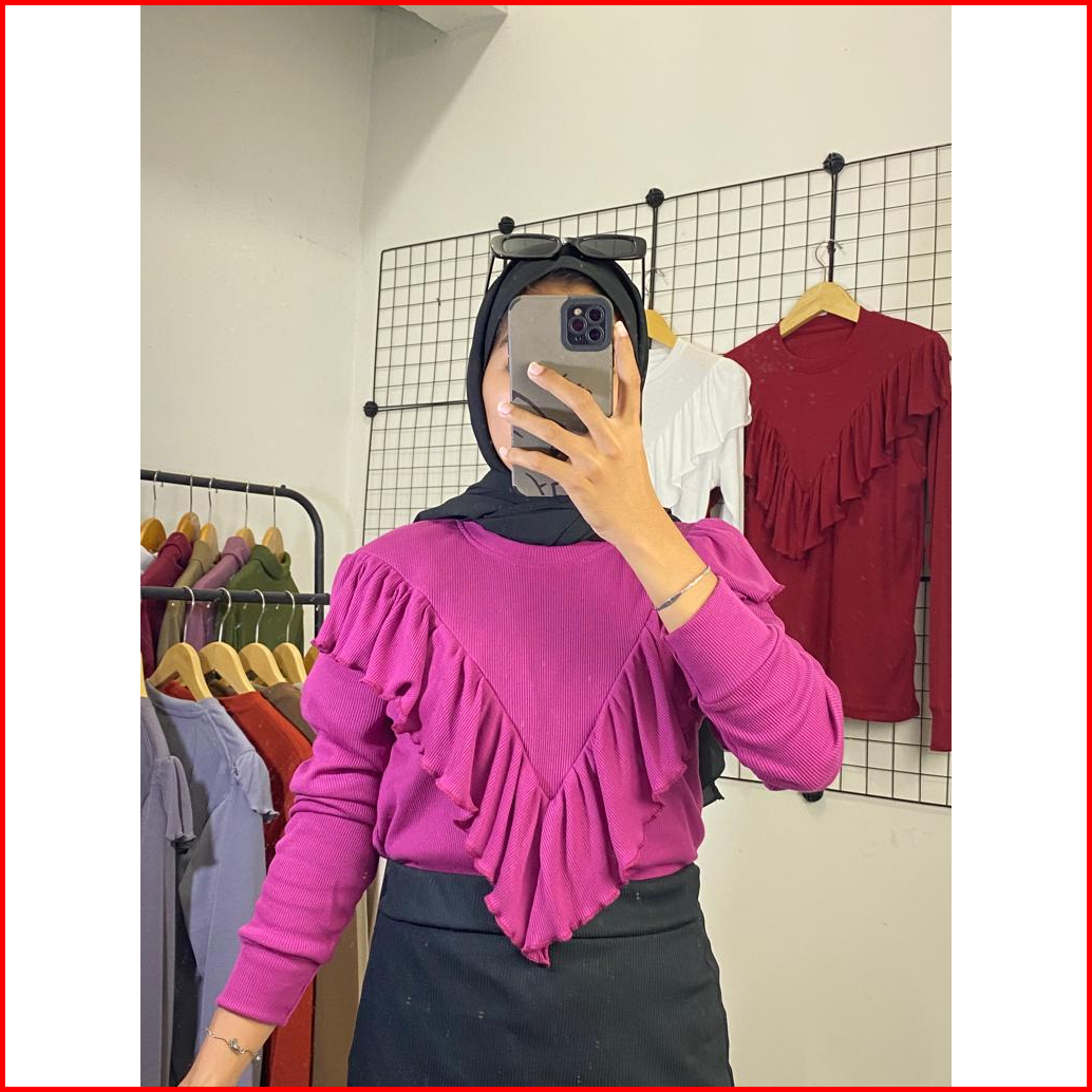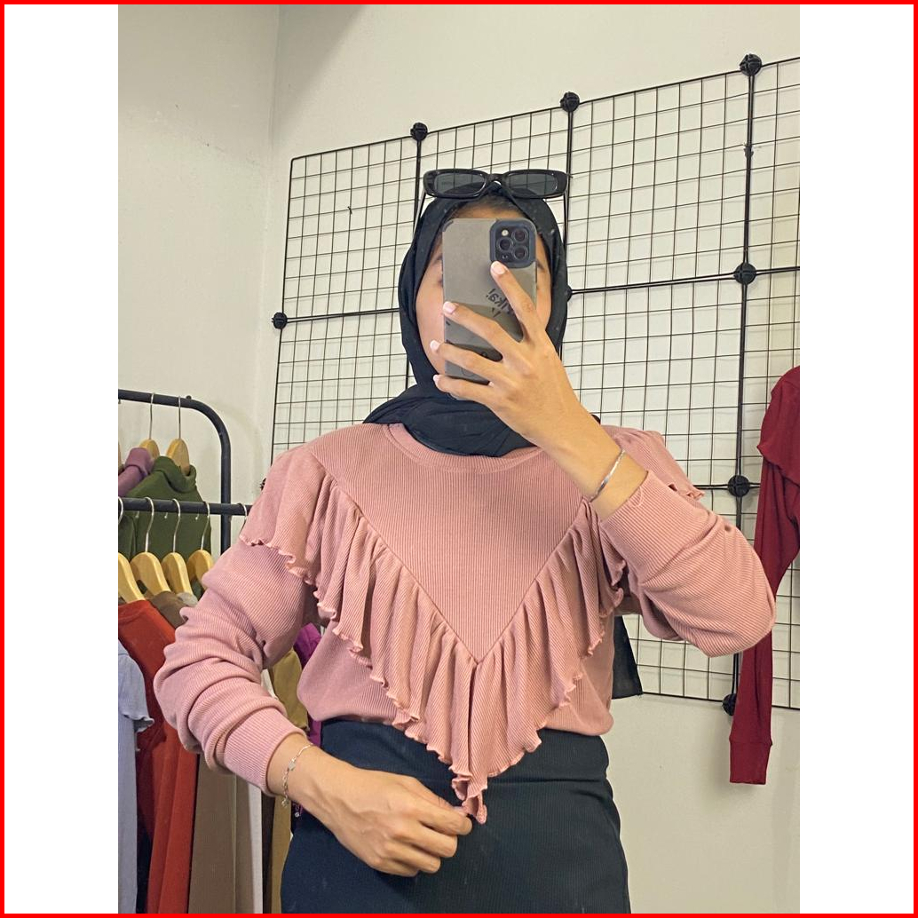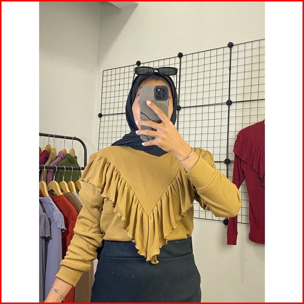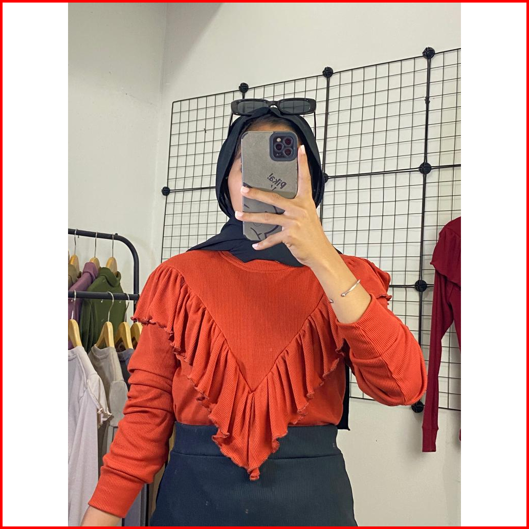 Blouse Rample Wanita Terbaru Kaos Rib Rumbai Wanita