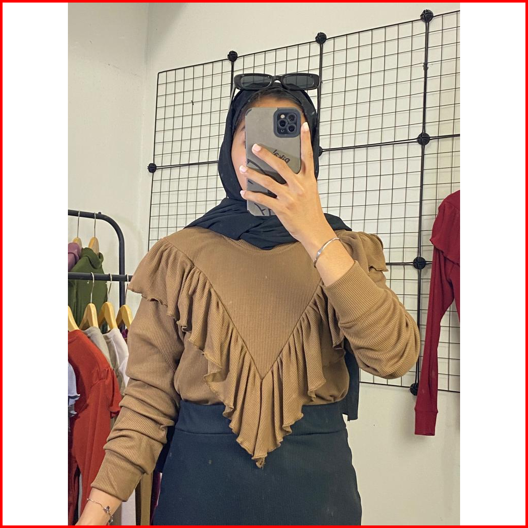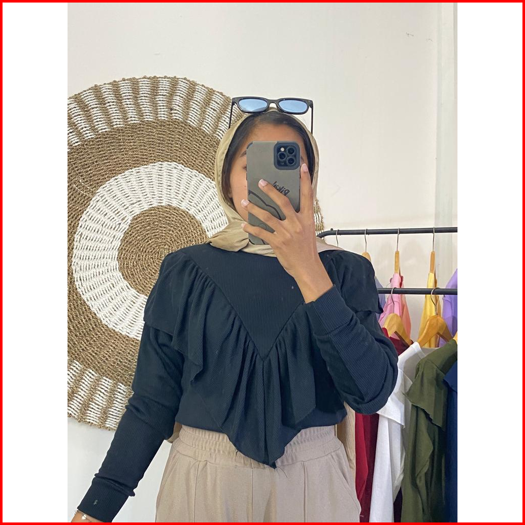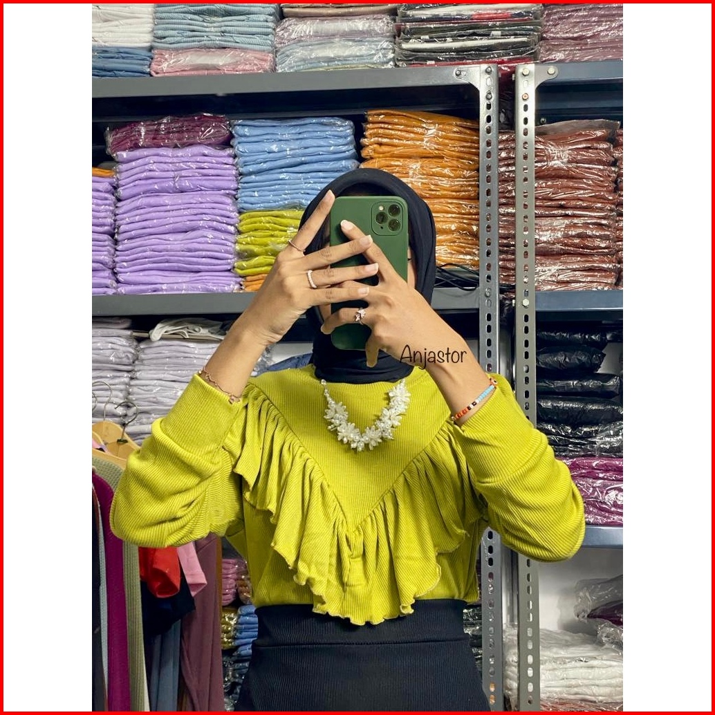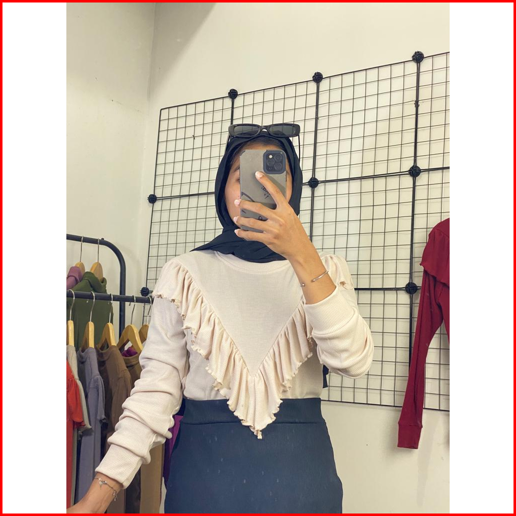 Blouse Rample Wanita Terbaru Kaos Rib Rumbai Wanita