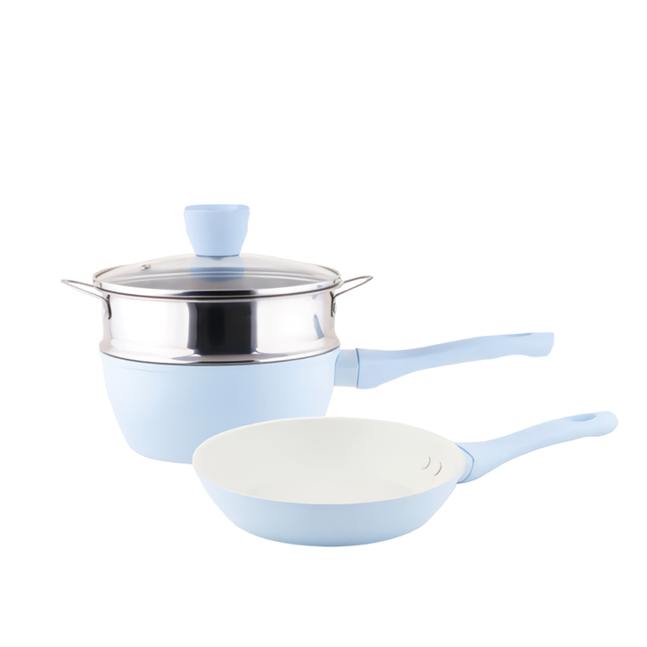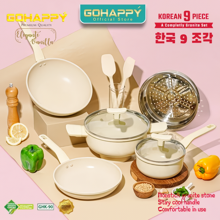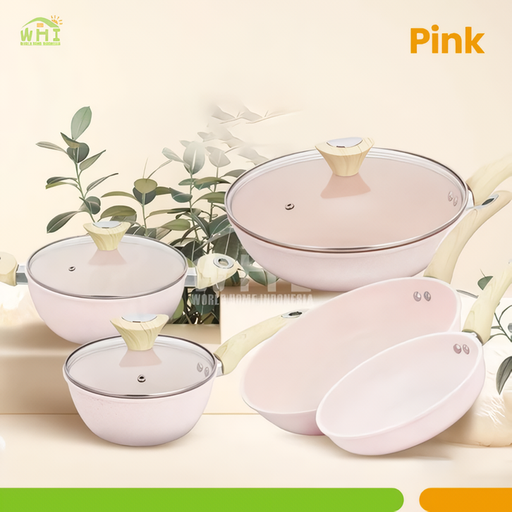 Teflon Anti Lengket 1 set Asta Gohappy Mayba 7 pcs Alat masak Panci Wajan Penggorengan dengan Tututp stainless steel