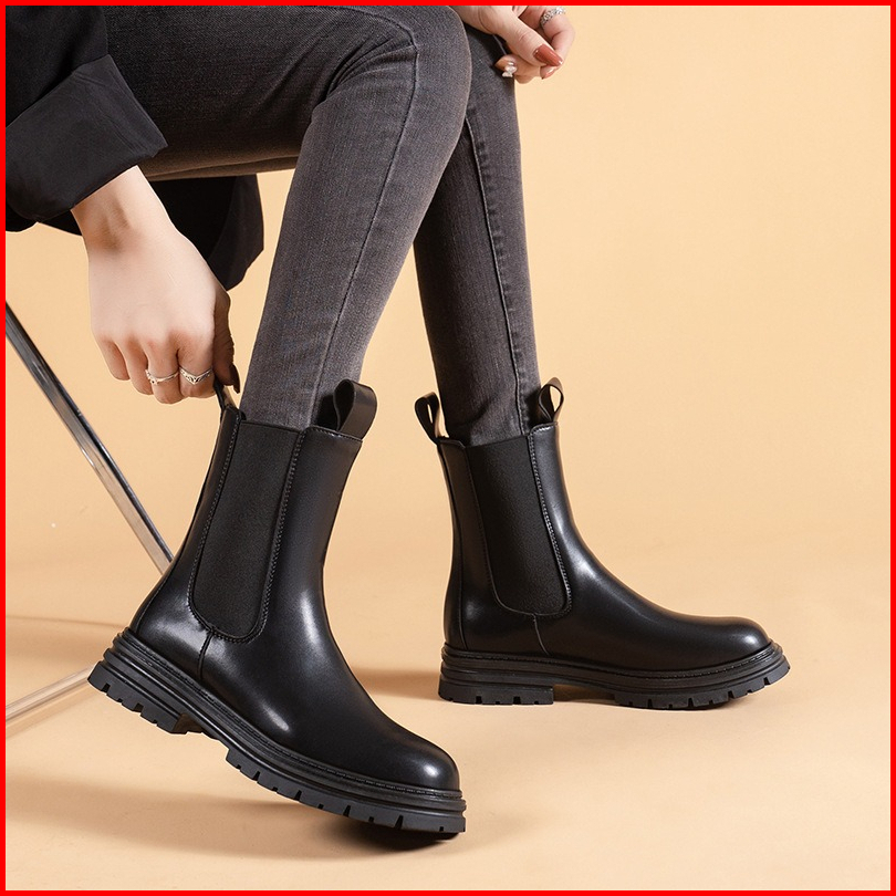Sepatu Wanita Boots Hitam Sepatu Boot Slip On Perempuan Coklat Trendy Sp-255