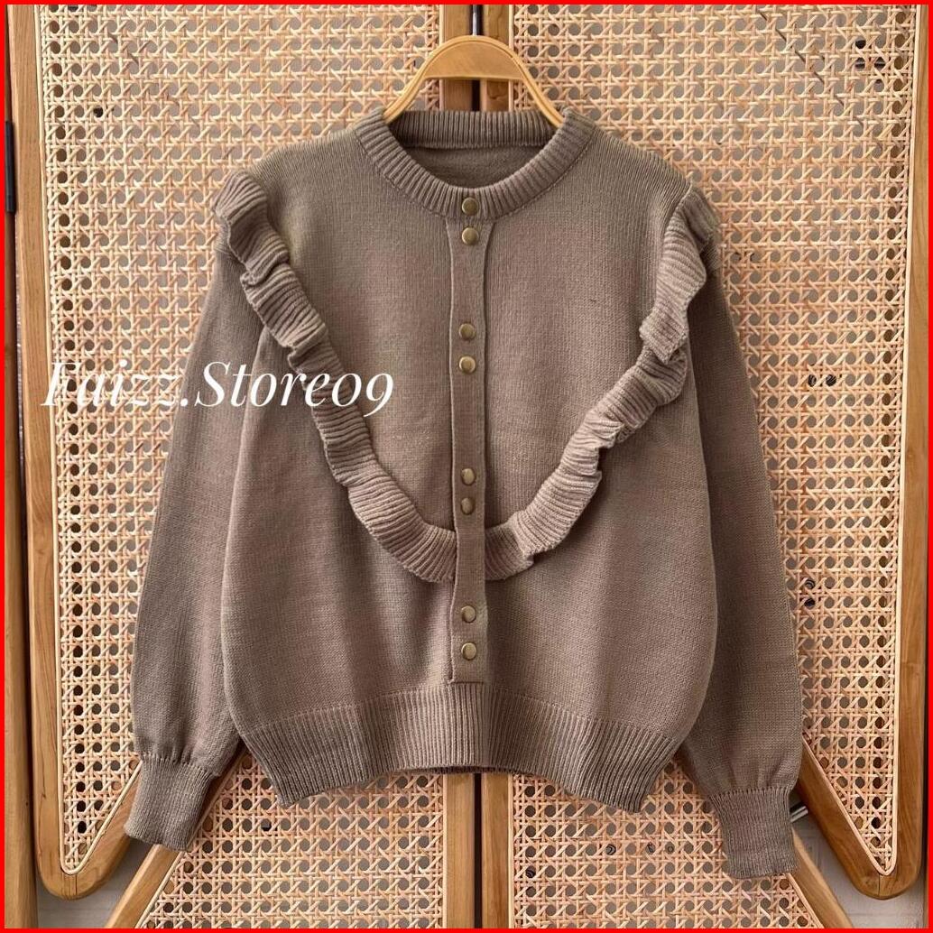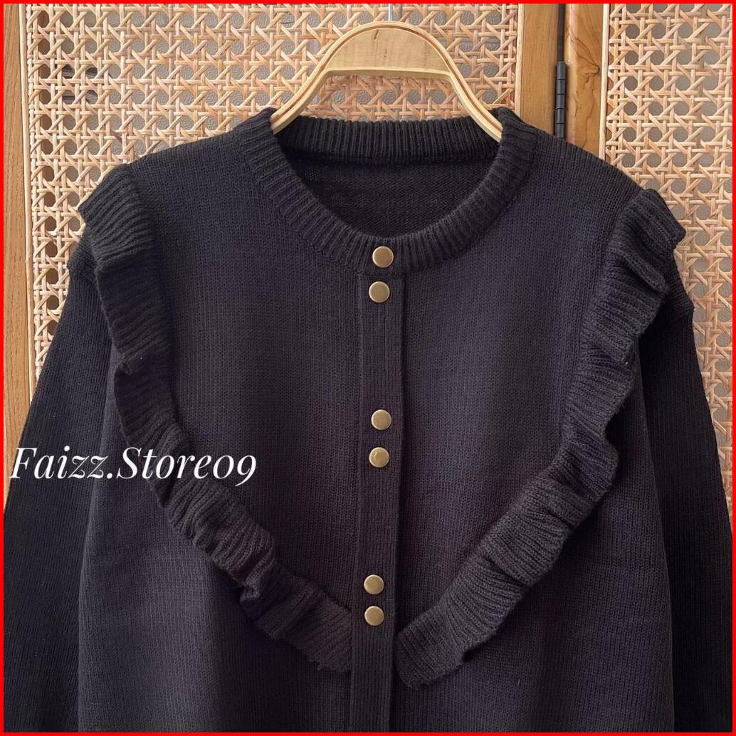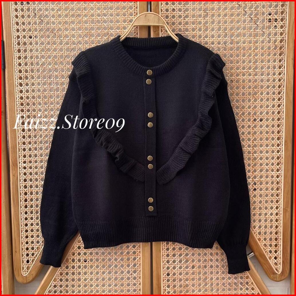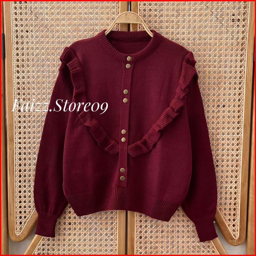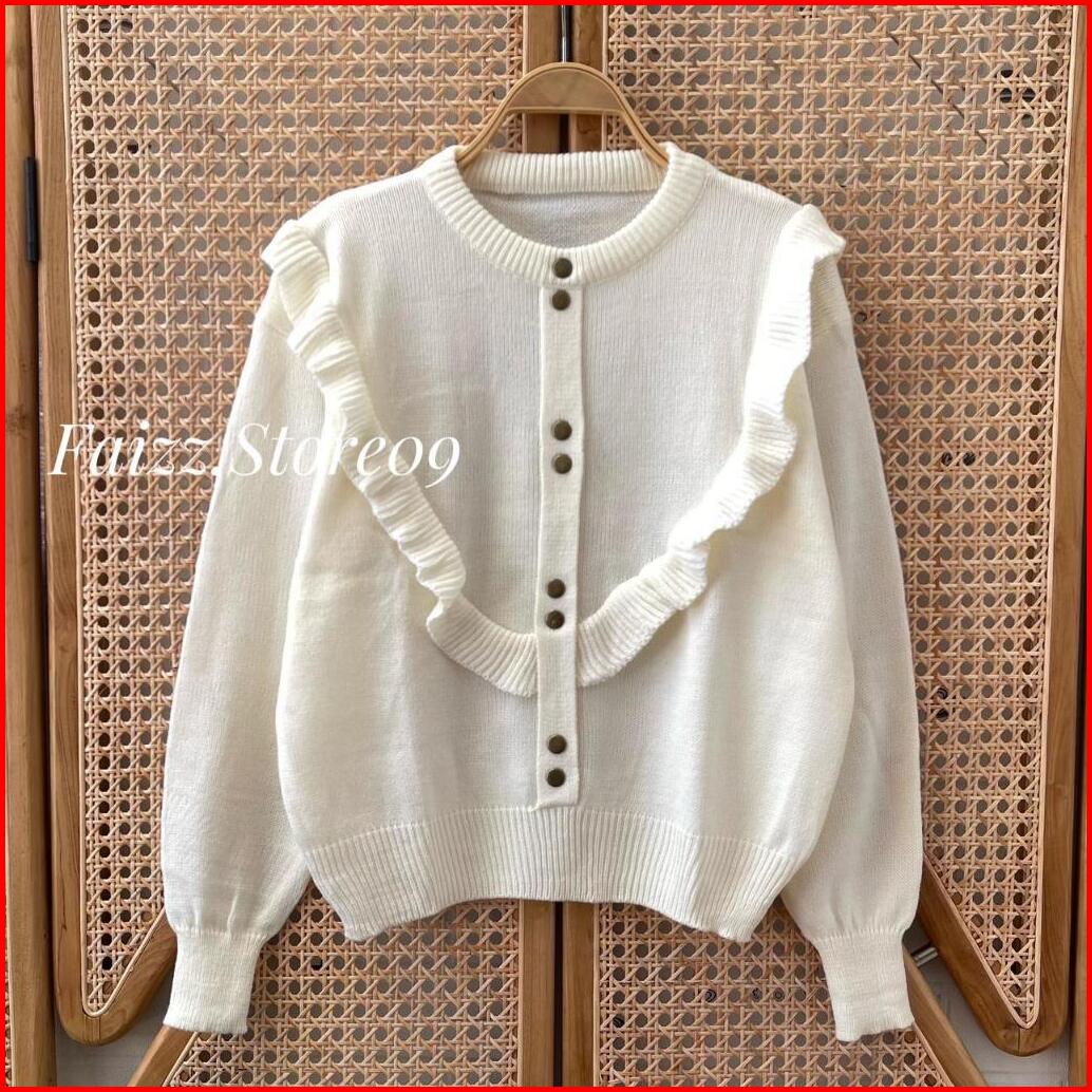 Rahayu Blous Rajut Wanita Motif Renda Kancing Lengan Panjang Wanita