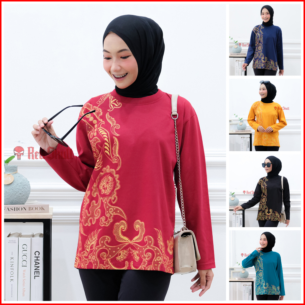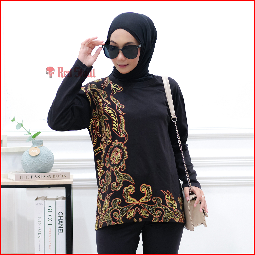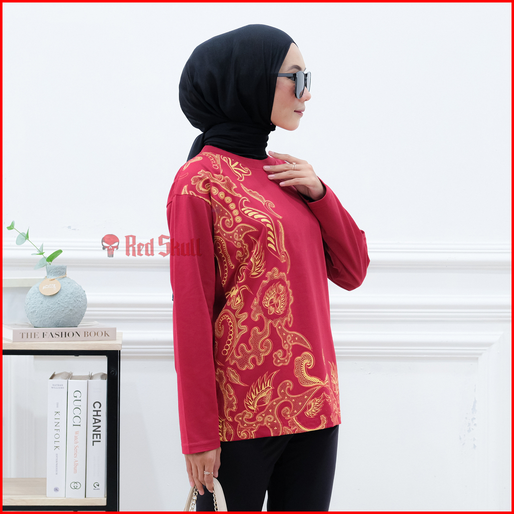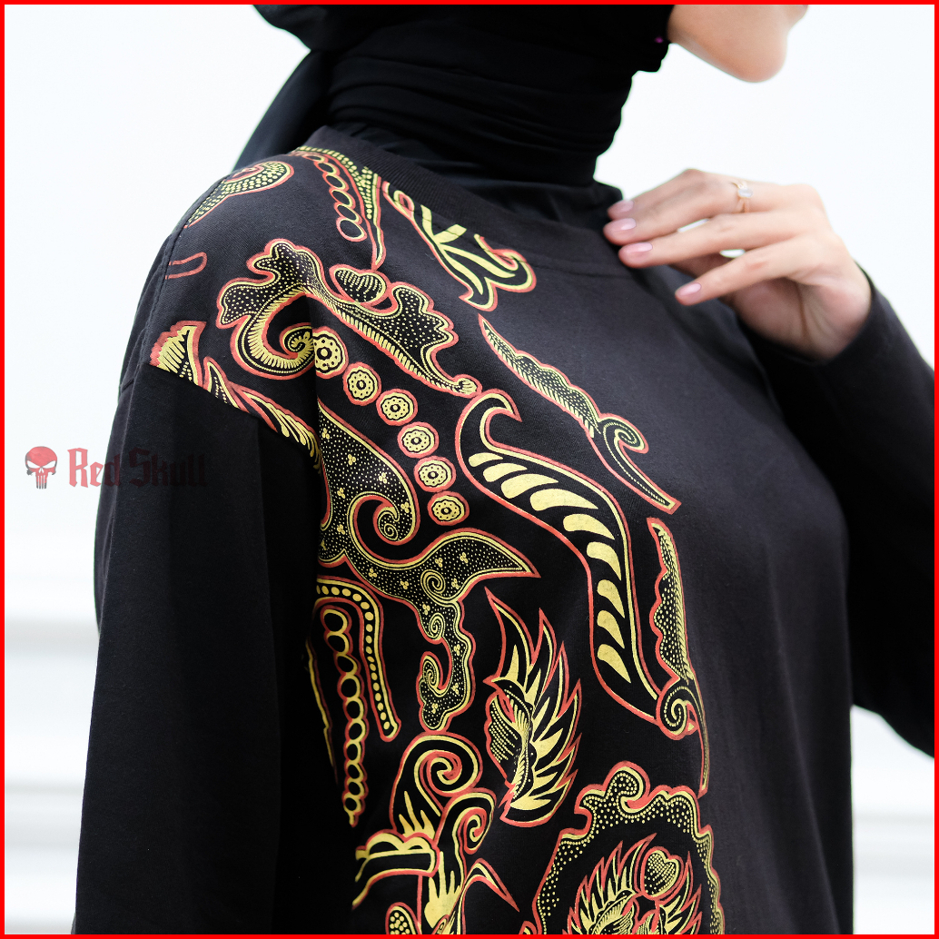Red Skull Kaos Oblong Panjang Katun Batik Daun Batik Solo