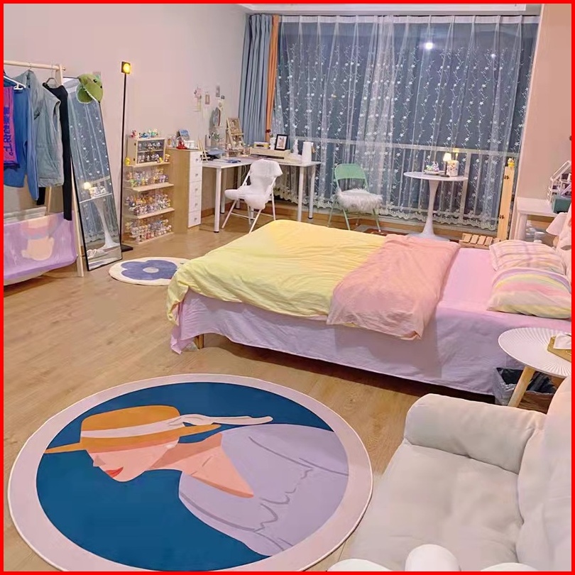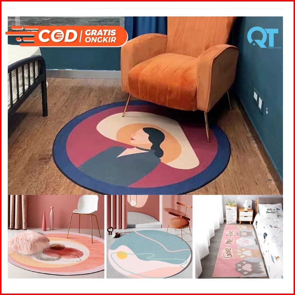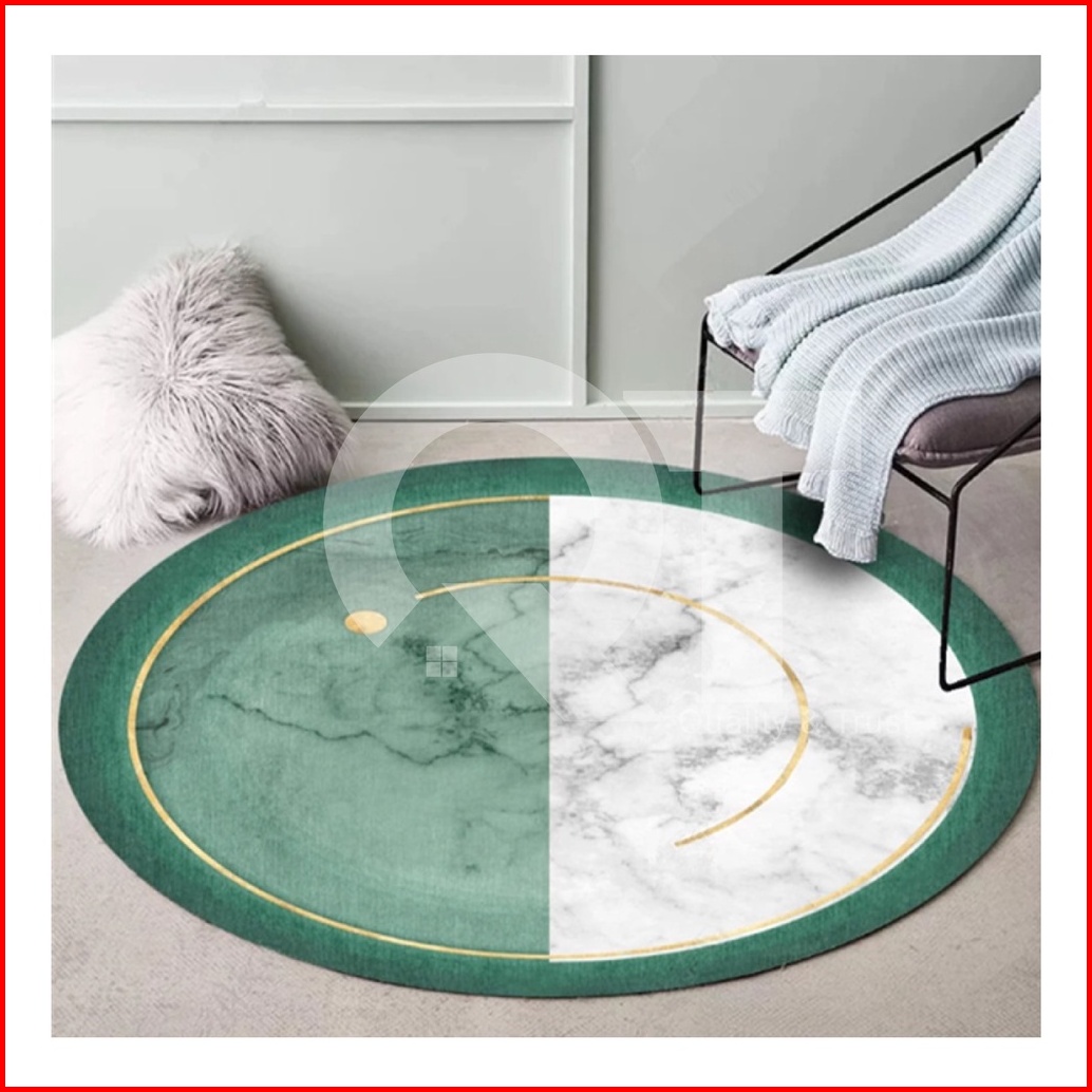 Diskon 55 Q T - Karpet Lantai Anti Slip Permadani Minimalis Modern Bulat Elegan Estetik Mewah Ruang Tamu Kamar Tidur