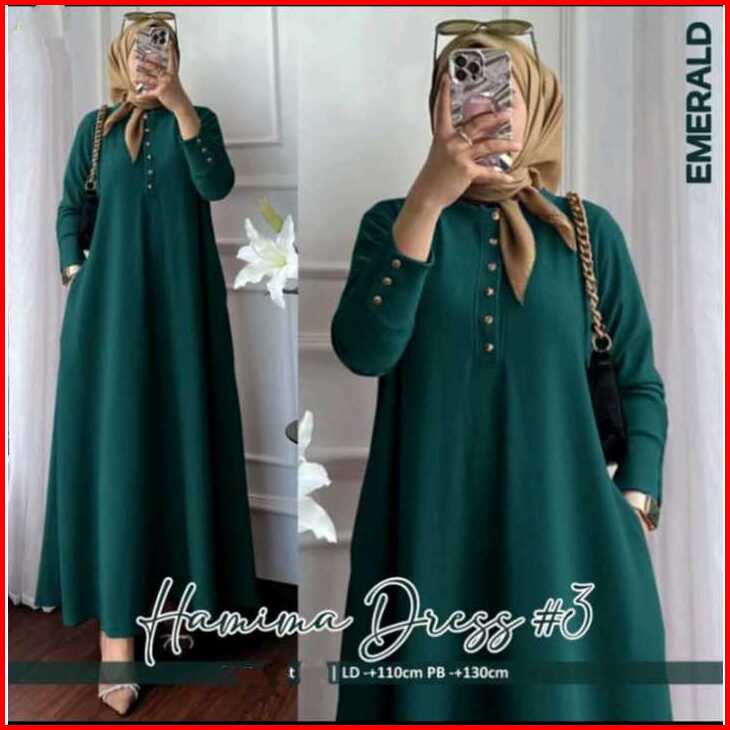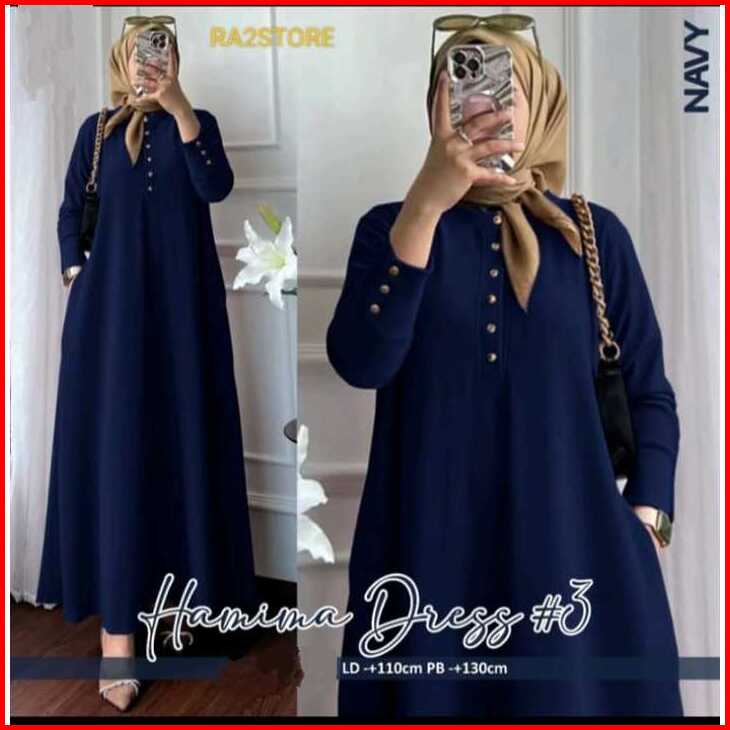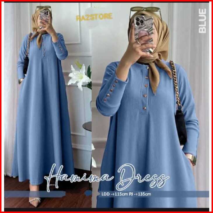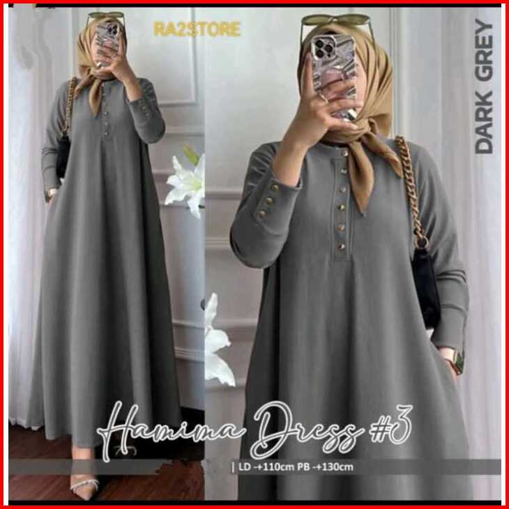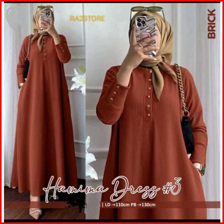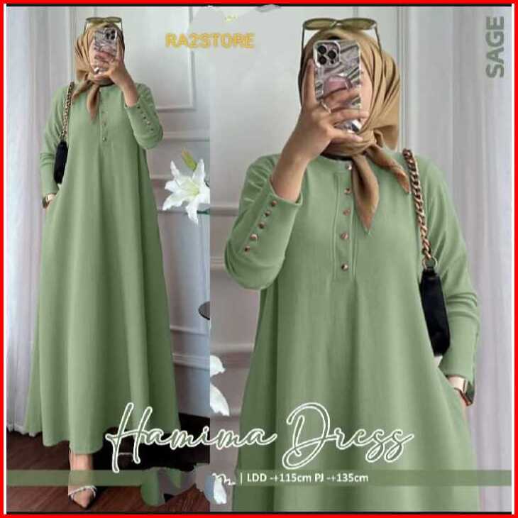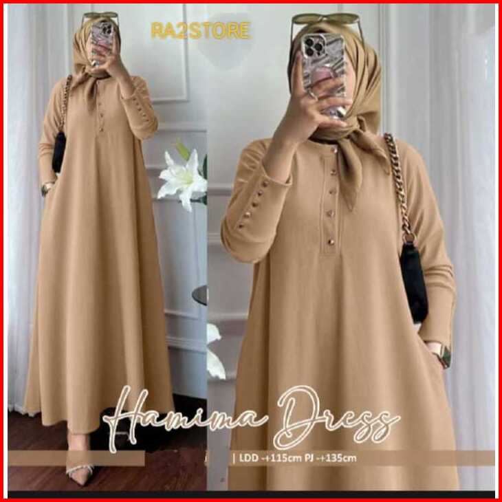 Dress Wanita Muslimah Kekinian Viral Terbaru Gamis Polos Hamima Crinkle Airflow Terlaris