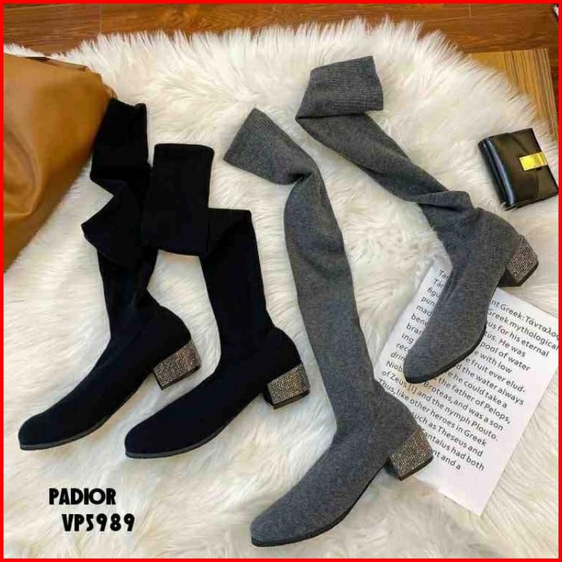 Boots Winter Overknee Elastic Padior Shoes Heels Diamond Vp5989