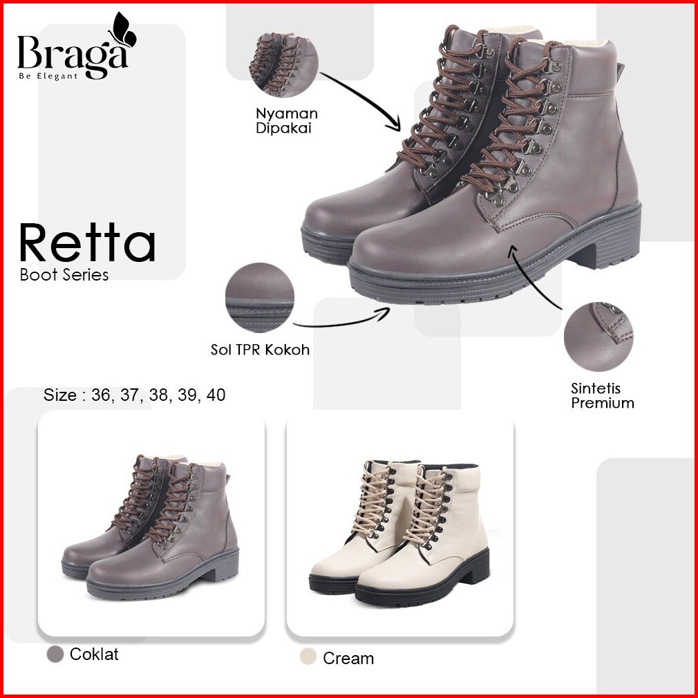 Braga Retta B 2761 - Sepatu Boots Wanita Formal Docmart Kerja Kantor Kuliah Hangout