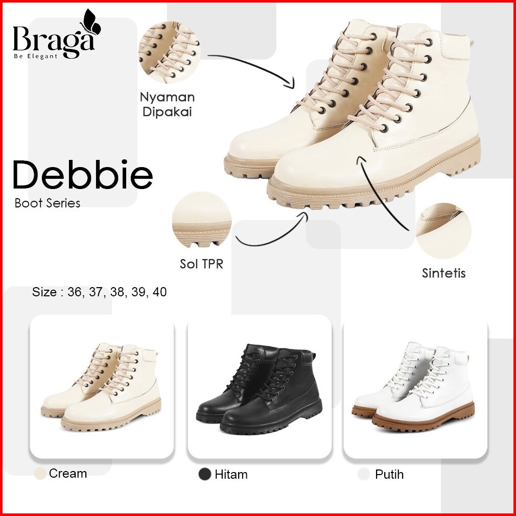 Braga Debbie Series B 2741 - Sepatu Boots Fashion Wanita Kuliah Kerja Santai Warna Hitam Putih Krem