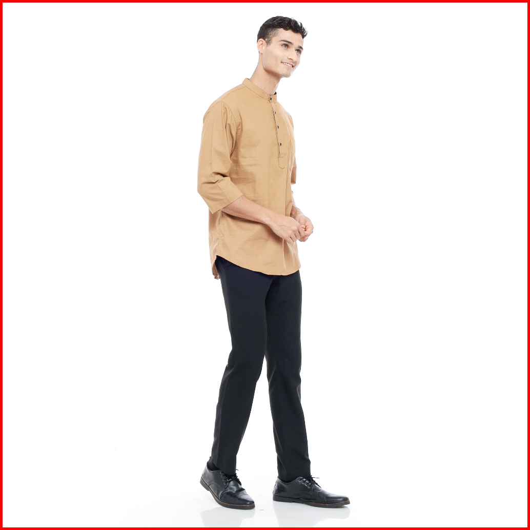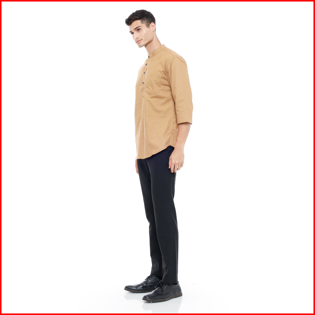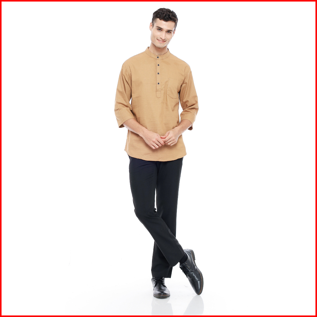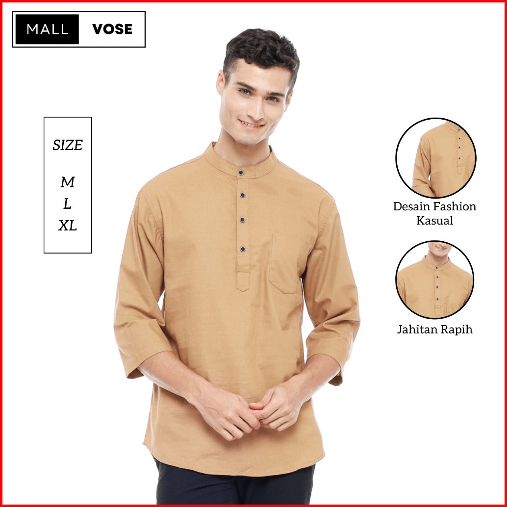 Mallvose - Koko Kemeja Pria Kurta Lengan 3 4 Baju Muslim Mv03 Brown