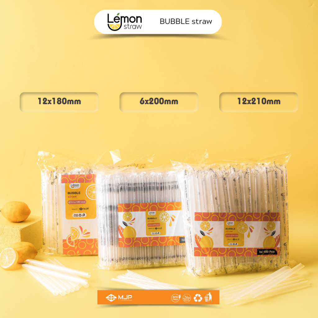 Sedotan Bubble Boba Runcing Steril Bening Transparan Bungkus Plastik, Merk Lemon Straw