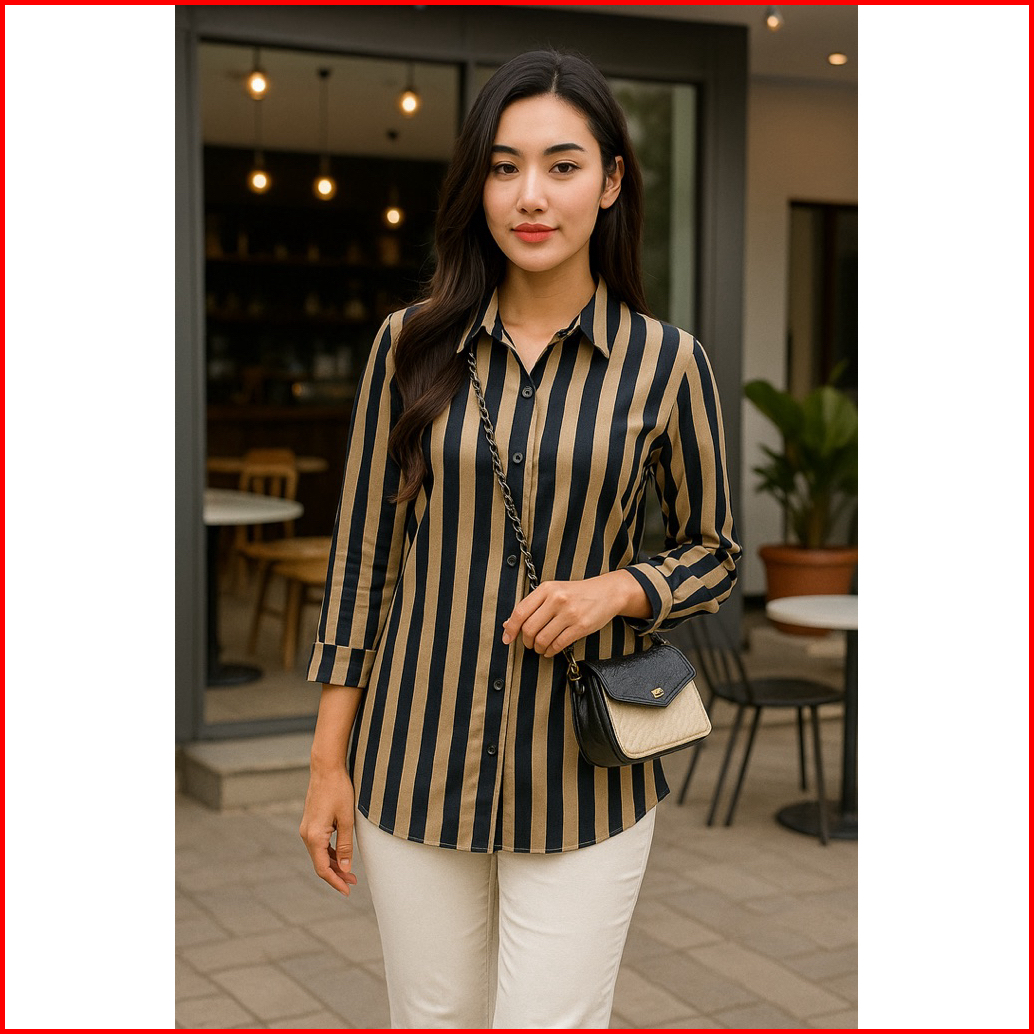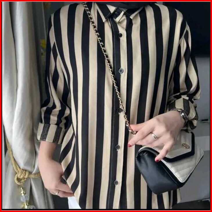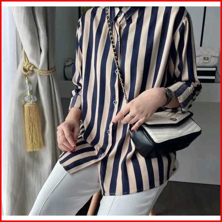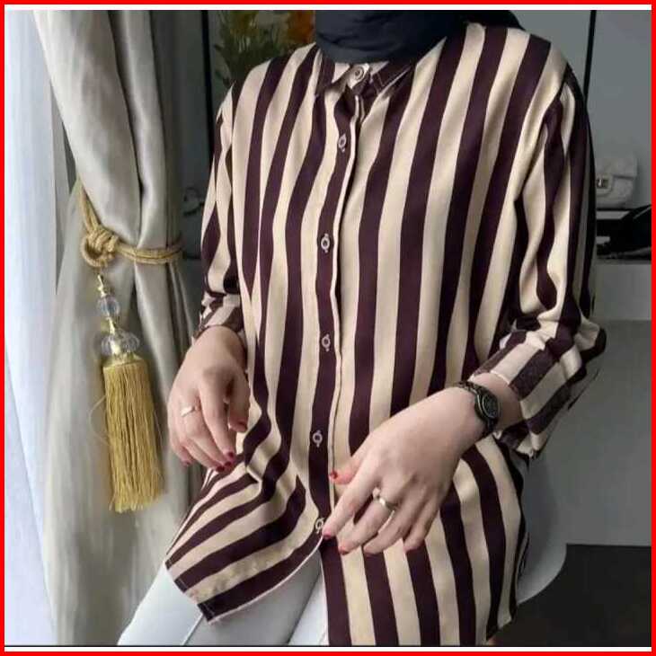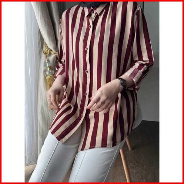 Best Atasan Wanita Motif Garis Garis Kemeja Salur Wanita Atasan Wanita Lengan Panjang Kemeja Wanita Jumbo