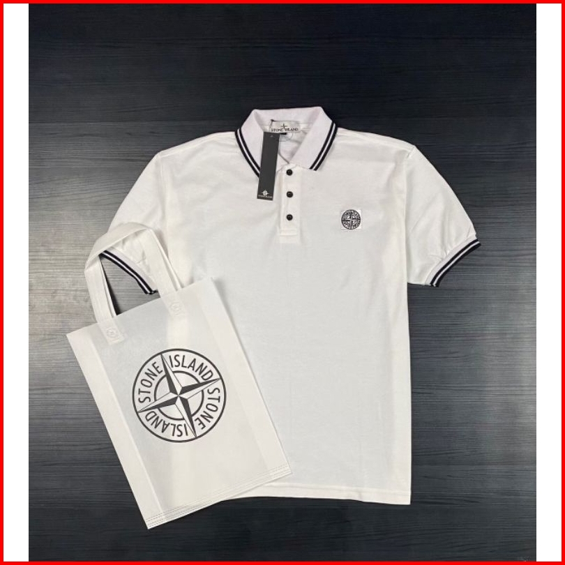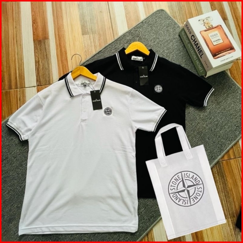 Men S Shirt Basic Atasan Kaos Polo Kerah Pria Lengan Pendek Free Bag