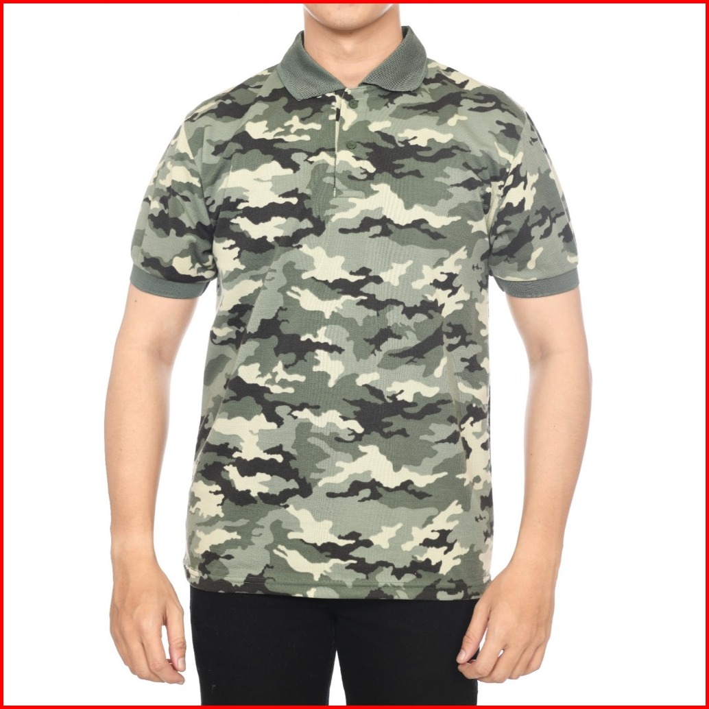 Kaos Polo Pria Motif Loreng Army Kaos Polo Camo