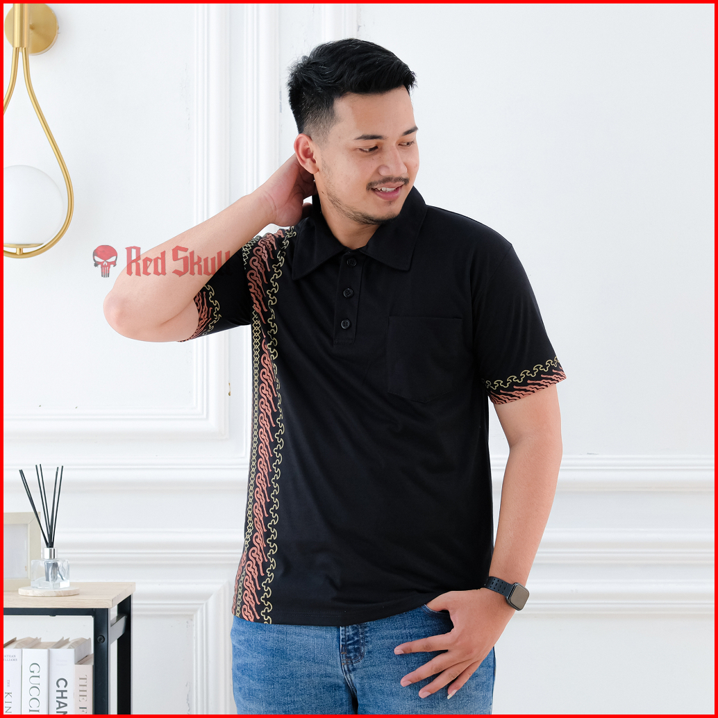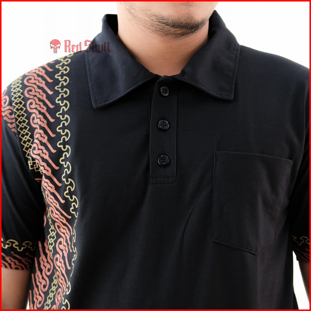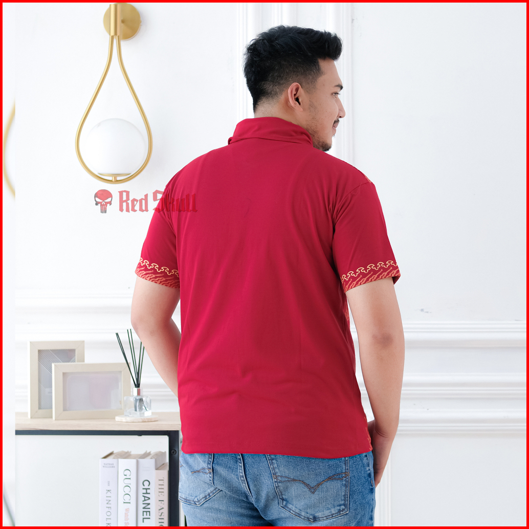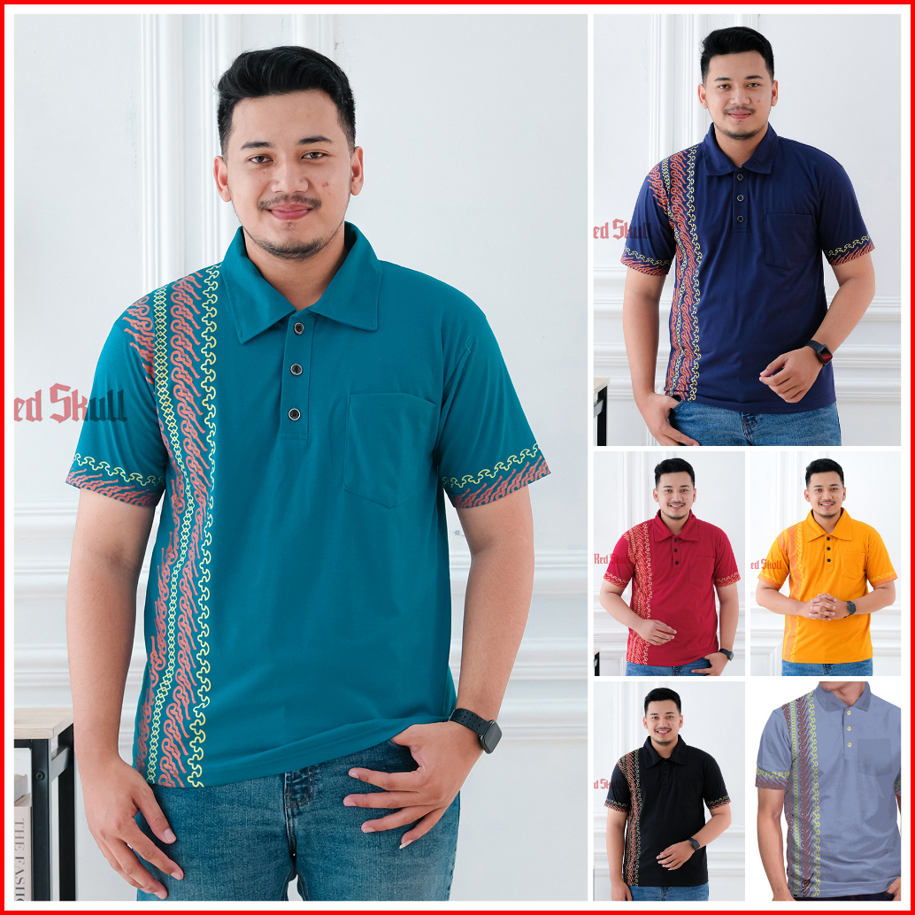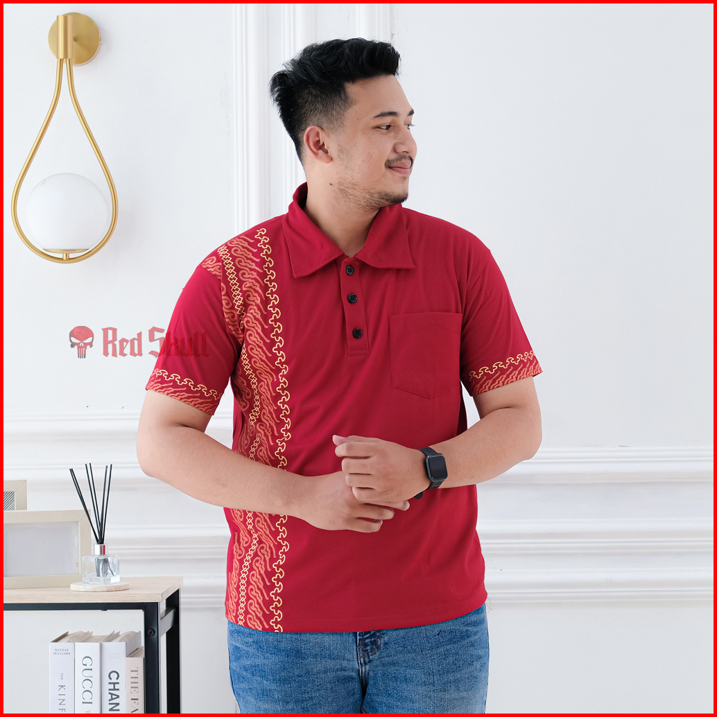 Red Skull Kaos Kerah Polo Batik Parang Bahan Katun Solo Hijau Ada Saku