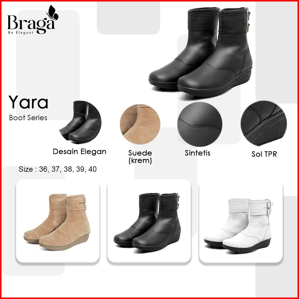 Braga Yara Series B 2841 - Sepatu Boots Fashion Wanita Kekinian Casual Kerja Hangout Warna Hitam Putih Krem