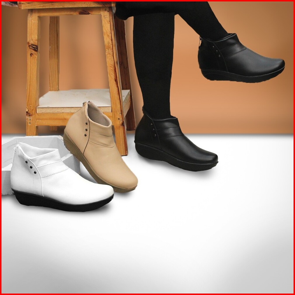 Braga Aleza B 2781 - Sepatu Boot Formal Wanita Wedges Kerja Kuliah Hangout Warna Hitam