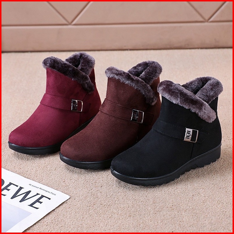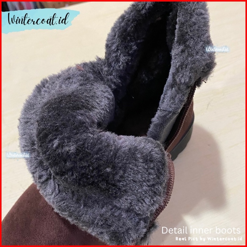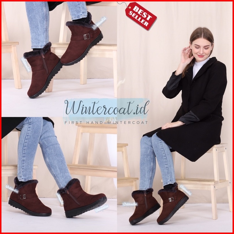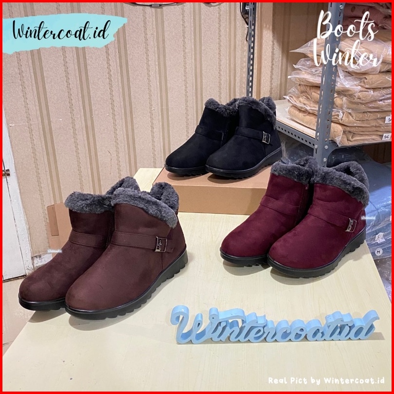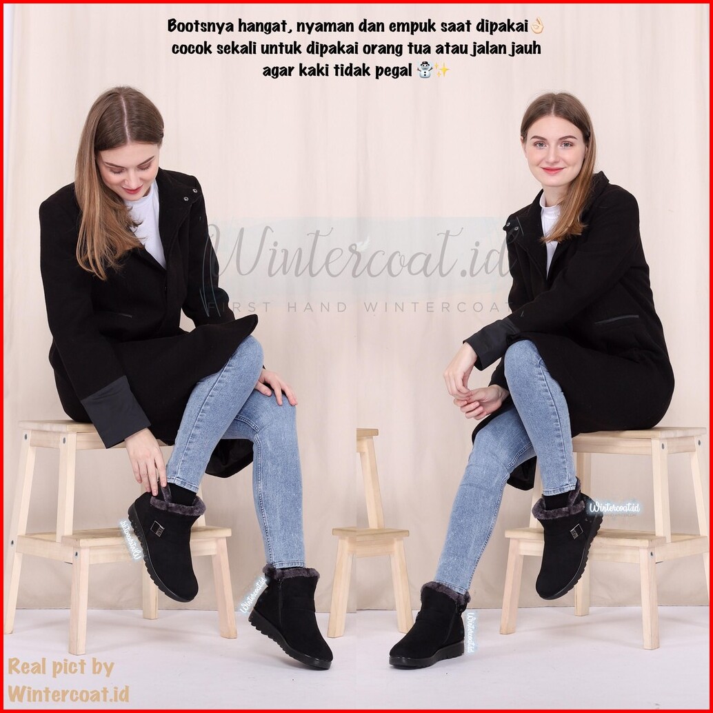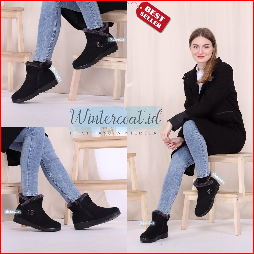 Boots Winter Wanita Import Sepatu Musim Dingin Hangat Bulu Murah Black Hitam Empuk Fitri