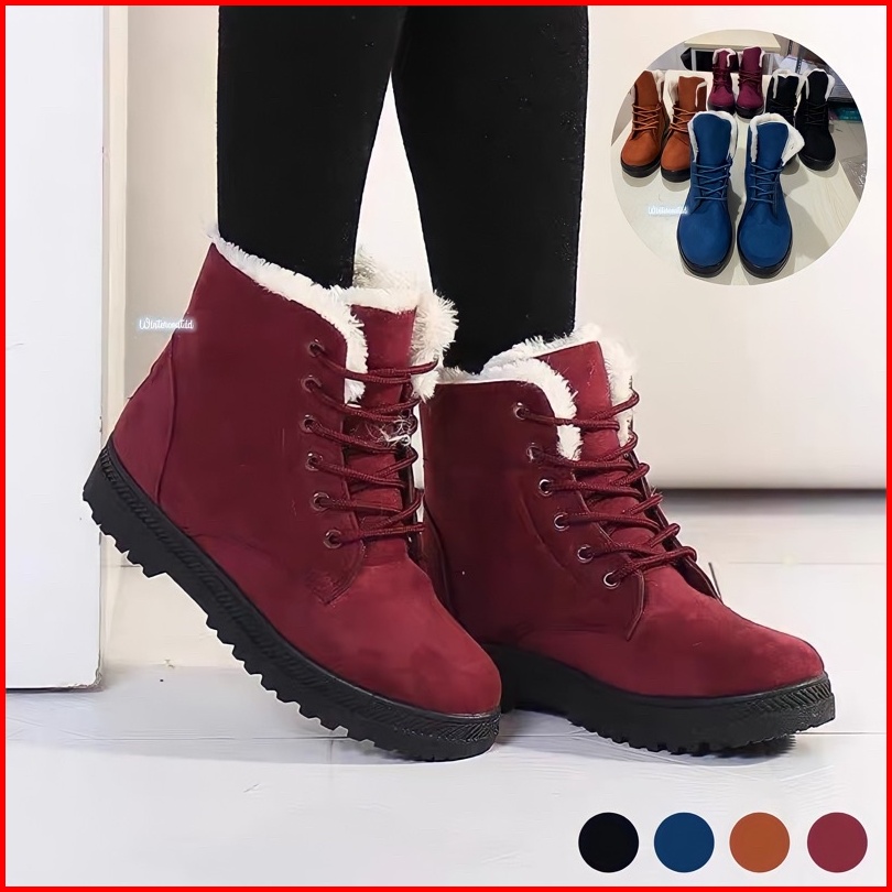 Boots Winter Wanita Sepatu Hangat Musim Dingin Import Ankle Murah Inner Bulu Fur Ciri