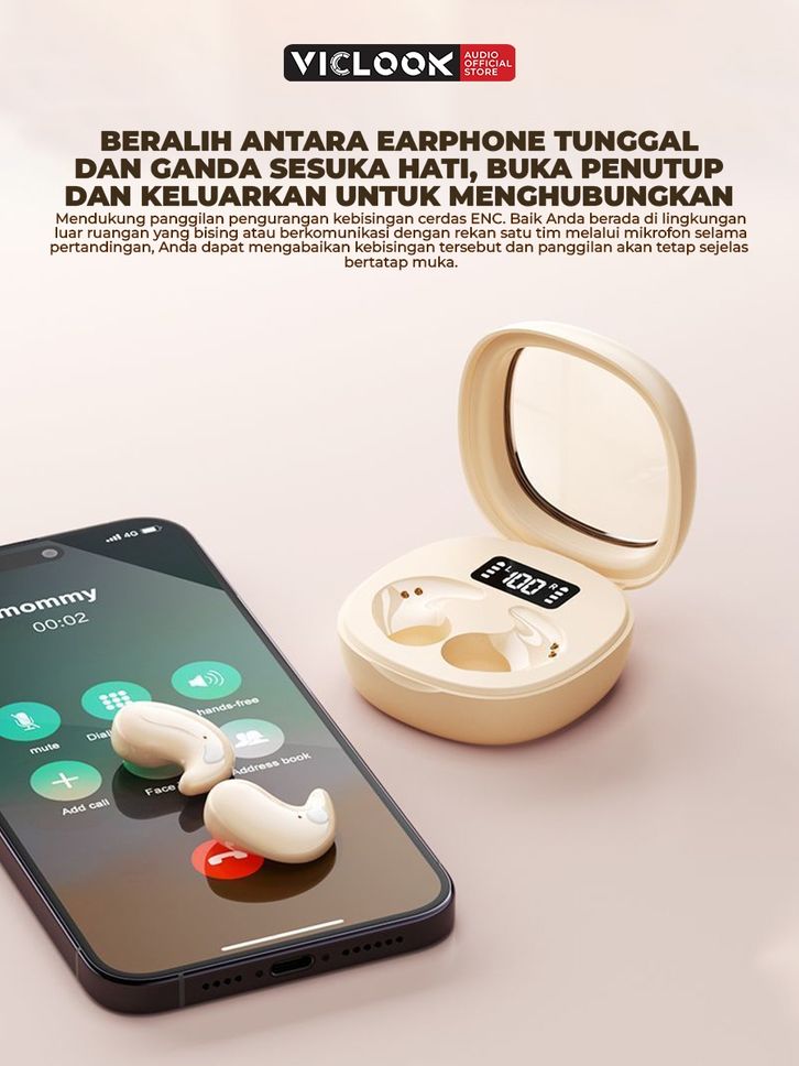 Headset Bluetooth Earphone Wireless TWS Bluetooth V5.4 VICLOOK Sleep