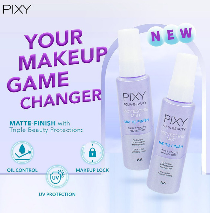 PIXY AQUA BEAUTY PROTECTING MIST MATTE FINISH 60ML SETTING SPRAY BIRU 60ML