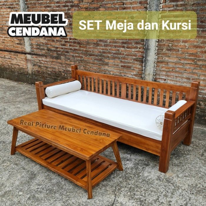 Kursi Bale Bale Minimalis Jati Sofa Kursi Bale Bale Kayu Jati - Tanpa Bantalan
