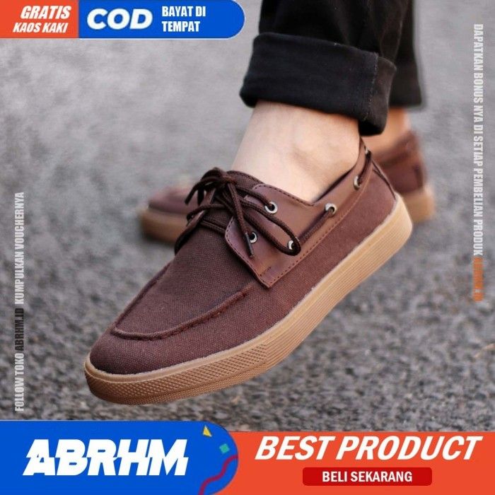 sepatu kasual loafers sneakers pria zapato kanvas - Cokelat 39