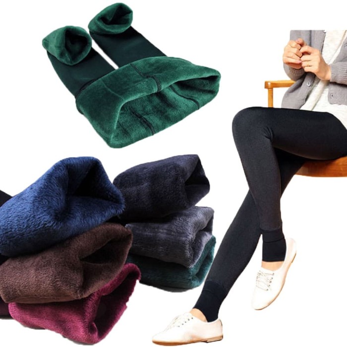 Legging Wanita Longjohn Import Lapis Bulu Musim Dingin - Hijau