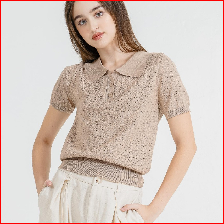 This Is April Atasan Rajut Wanita Kekinian Lengan Pendek Verla Top