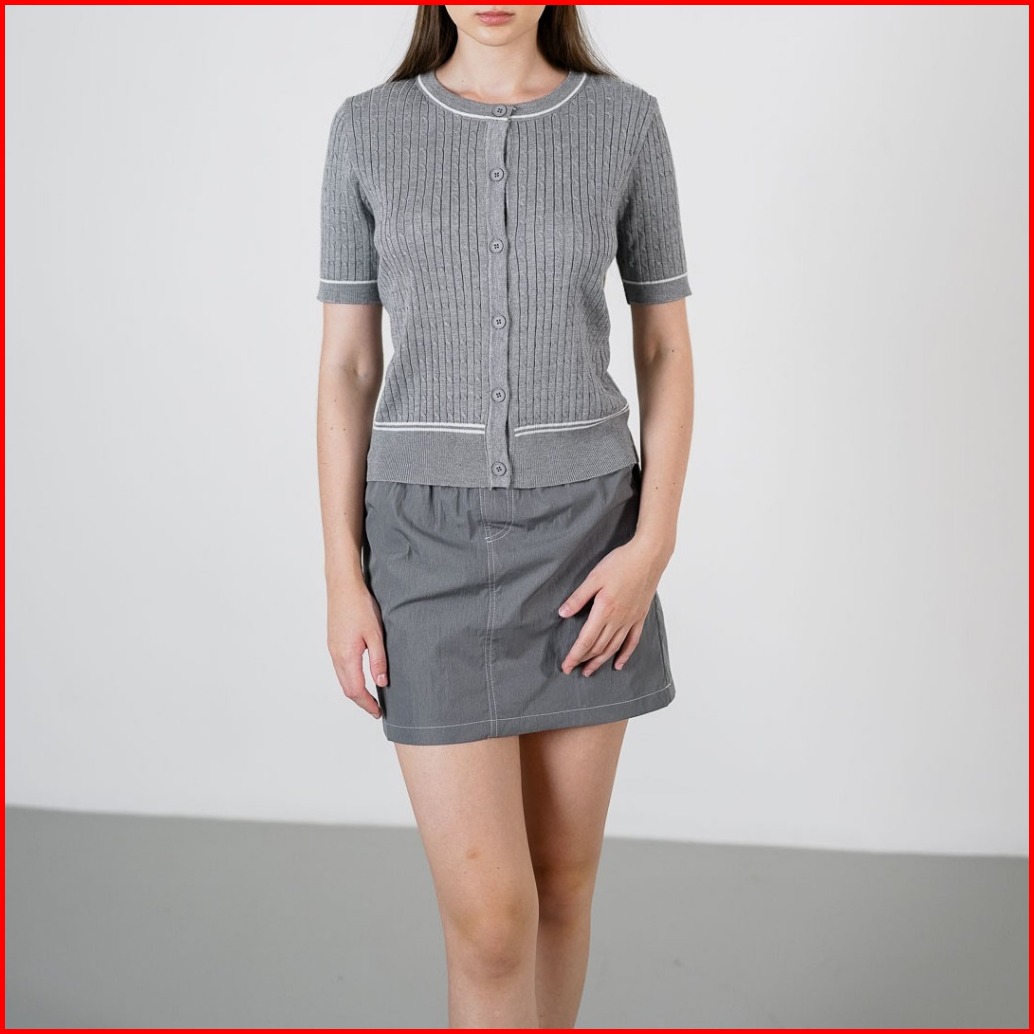 This Is April Atasan Rajut Knit Wanita Kekinian Lengan Pendek Ghea Top Taupe Grey