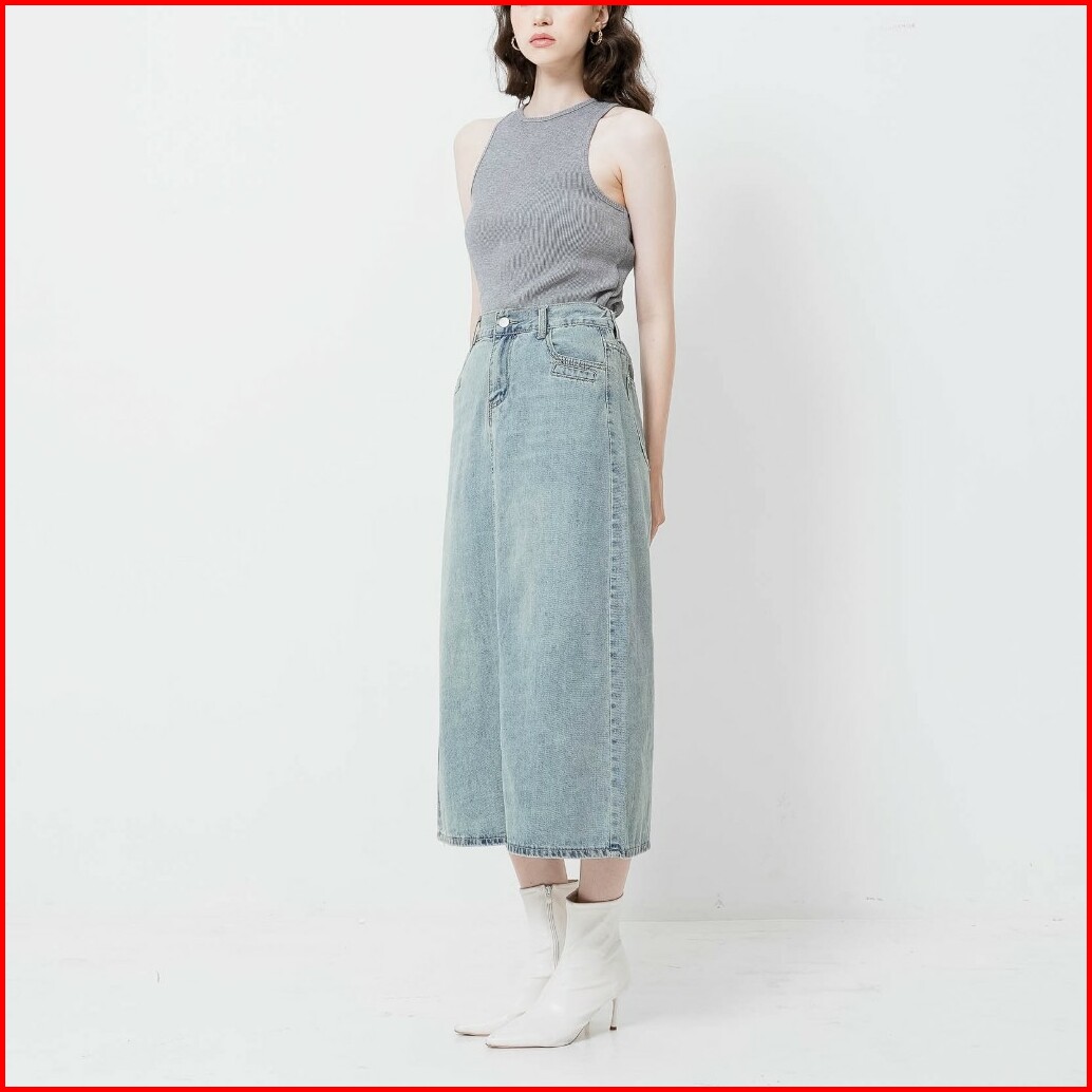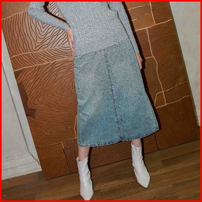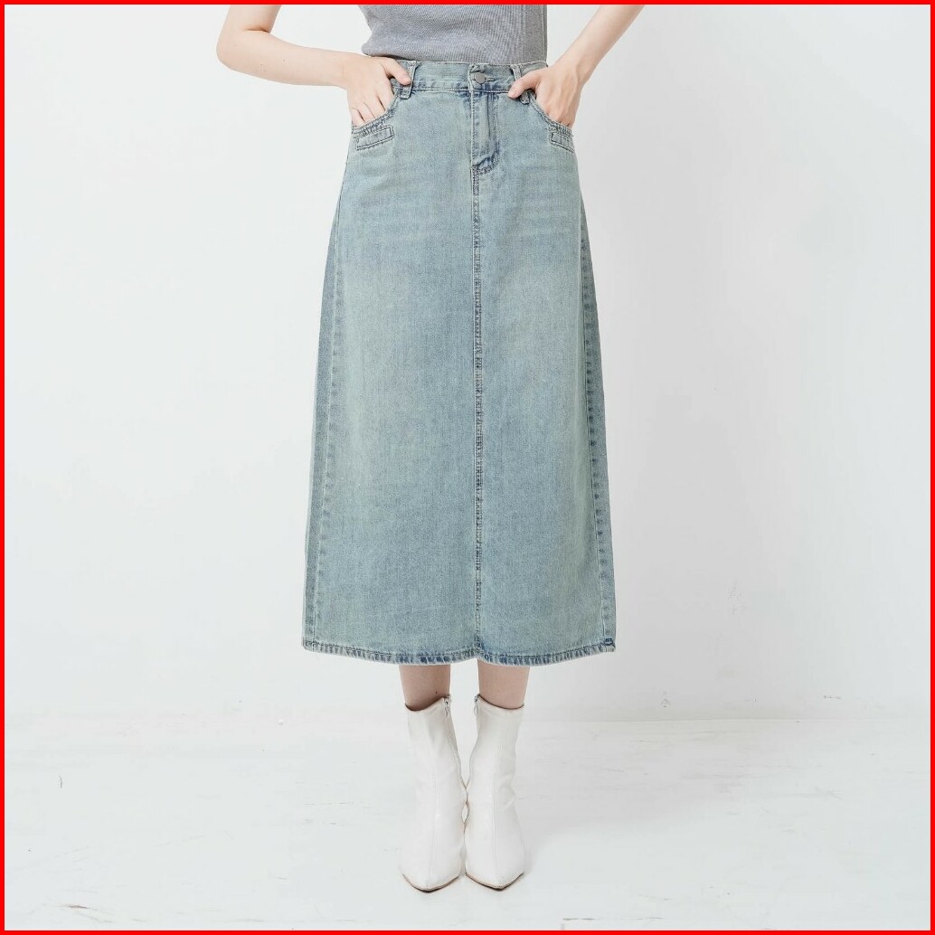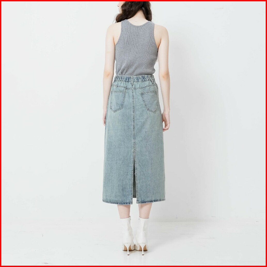 This Is April Rok Denim Midi Wanita Ruthie Skirt Light Denim