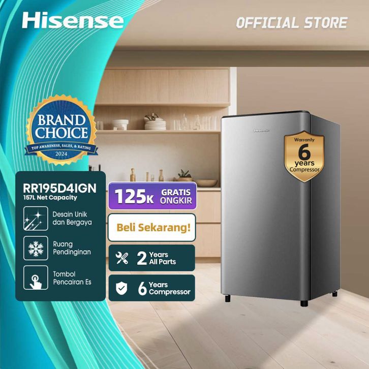Hisense Kulkas (Refrigerator)1 Pintu Kapasitas 157L RR195D4IGN -- Silver【Separate Chiller】KULKAS TERBARU TANPA DP