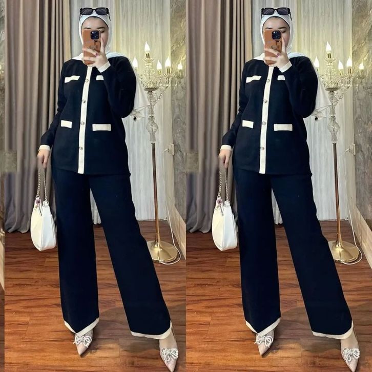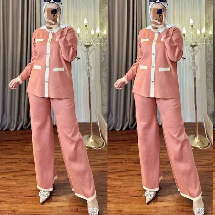 Qiana Set 2in1 Bahan Caramel Knit SetelQiana Set 2in1 Bahan Caraan Wanita Kekinian One Set Terbaru Blouse dan Celana ELF