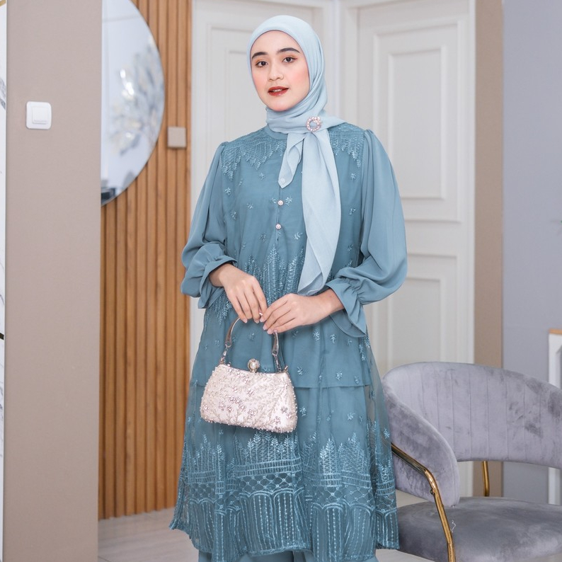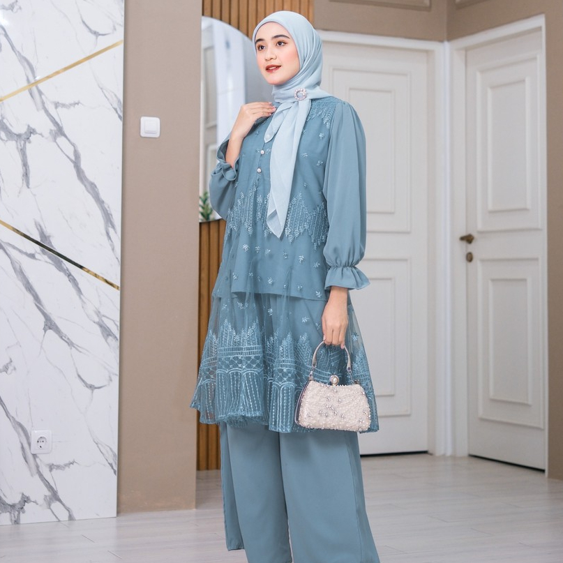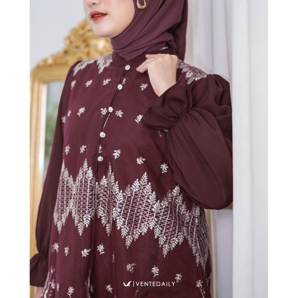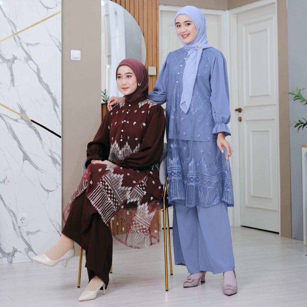 ( RAMADHAN SALE ) Ventedaily - Naeva One Set Atasan Tunik Brukat Celana Kulot Kondangan Busui Friendly