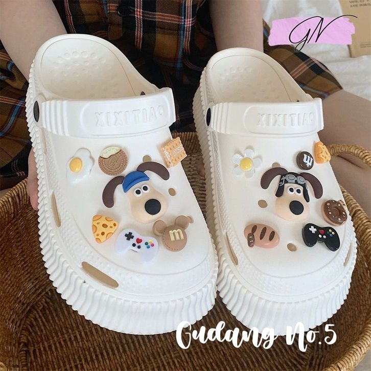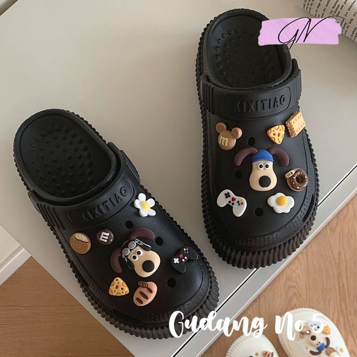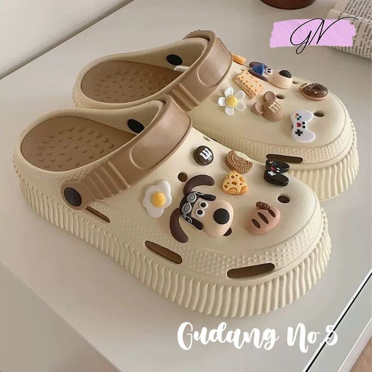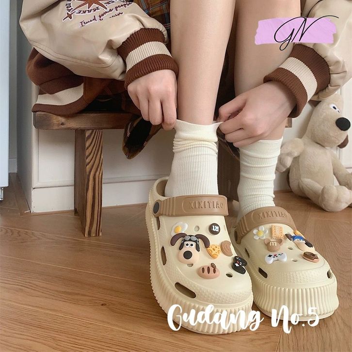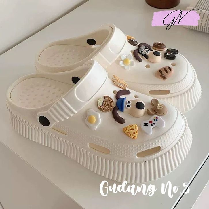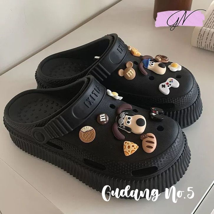 GN-906M Sandal Baim Wedges Eva AntiSlip Sendal Bapao Tinggi 6.5 CM dengan Jibbitz Import EVA Rubber Kekinian Terbaru