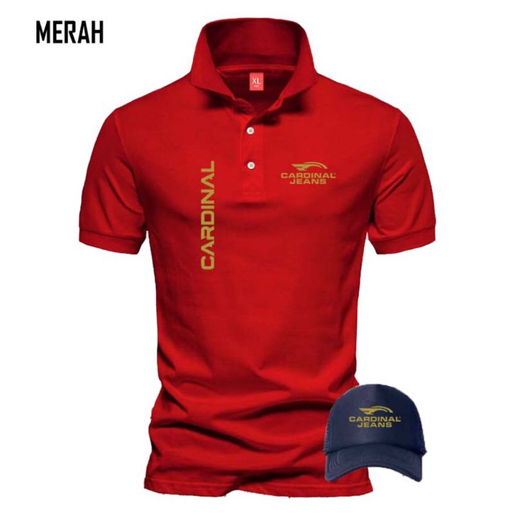 KAOS POLO PRIA & WANITA CARDINAL GOLD BONUS TOPI