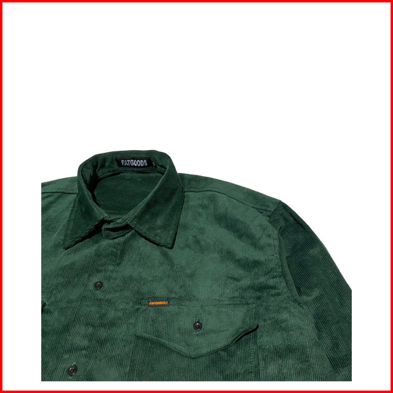 Fatgoods Kemeja Corduray Pria Jumbo Hijau Botol Cotton Corduray