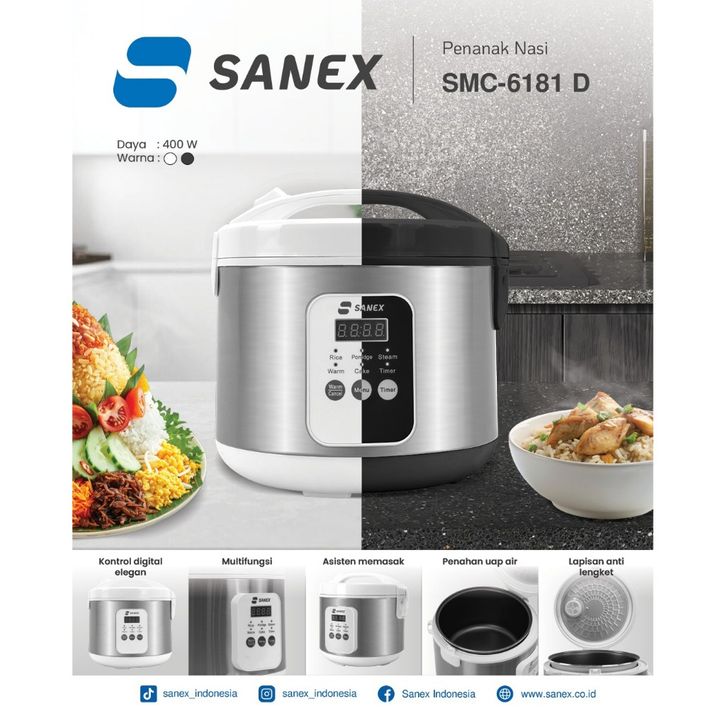 RICE COOKER SANEX SMC 6181D MAGIC COM DIGITAL STAINLESS STEEL KAPASITAS 1.8 LITER PENANAK NASI GARANSI RESMI