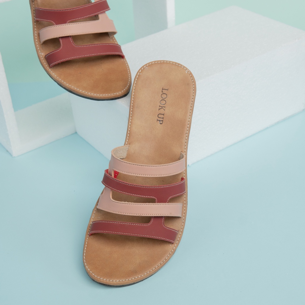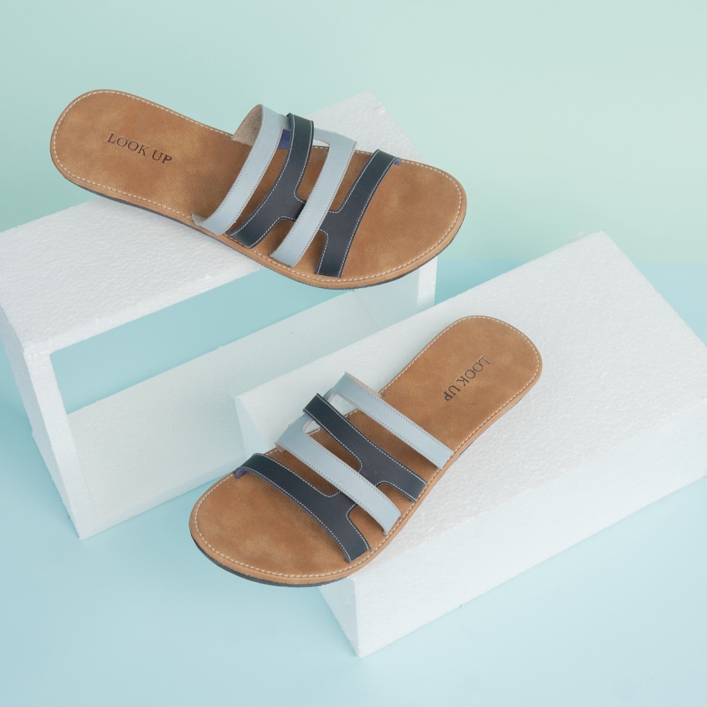 Look Up YUNIAR Sandal Wanita Slop Kokop Slide Sandal Flat Teplek Motif Kombinasi Flat Color Series