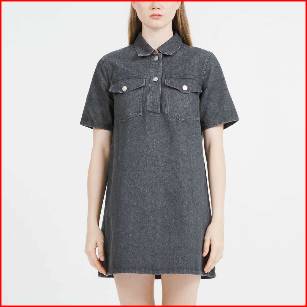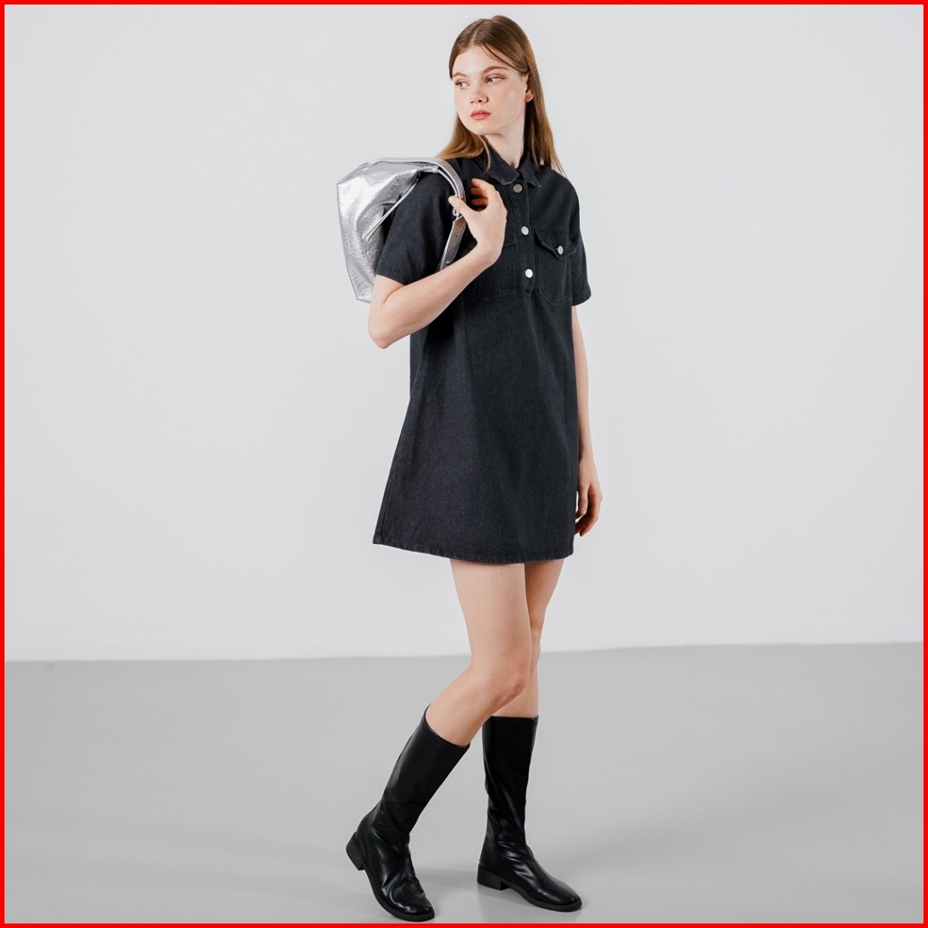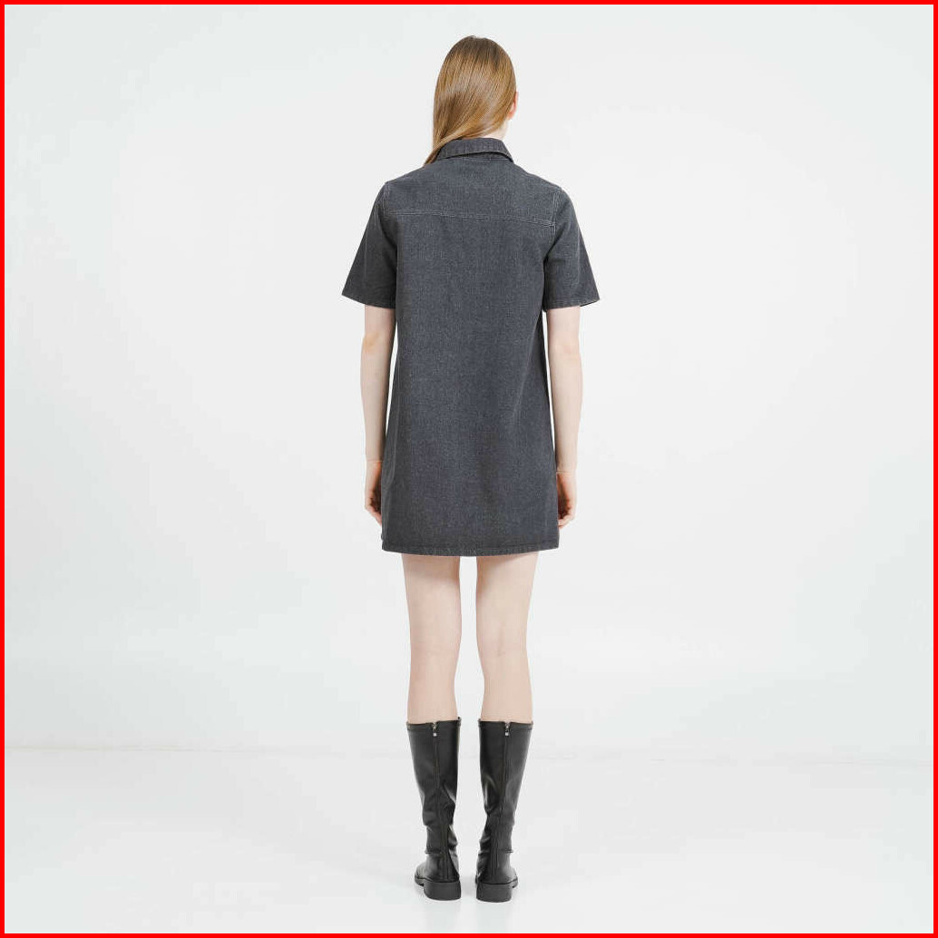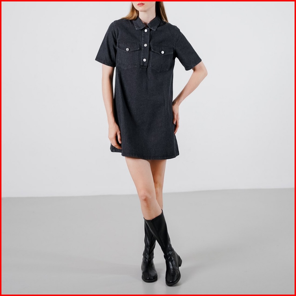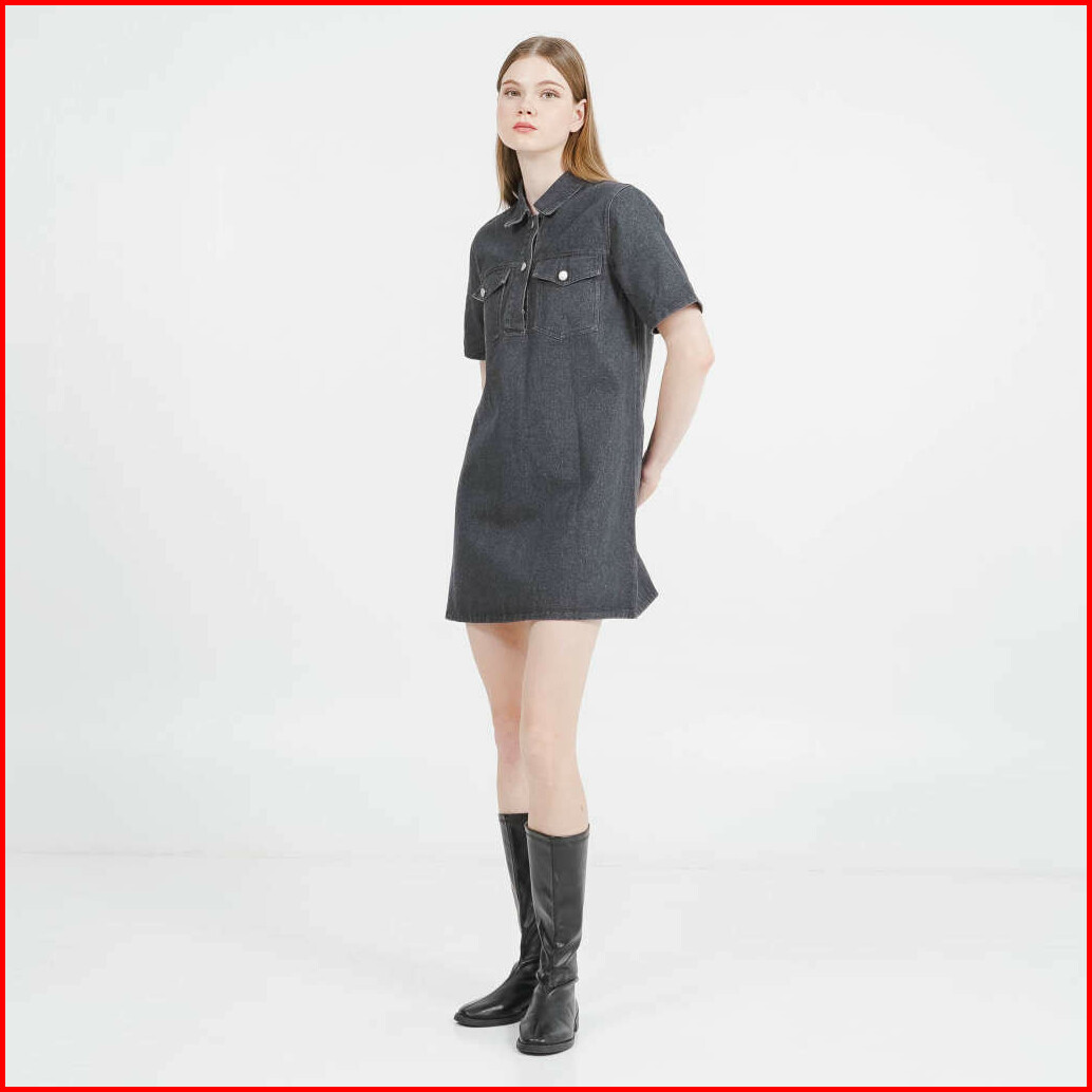 This Is April Midi Dress Denim Wanita Lengan Pendek Kekinian Ava Dress Black Denim C40091901900
