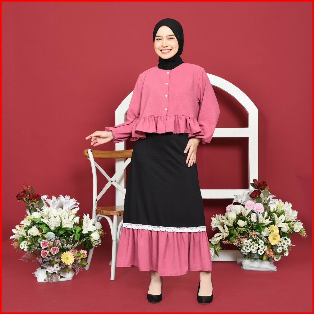 Mybamus Haia One Set Setelan Rok Wanita Kekinian Kemeja Rok